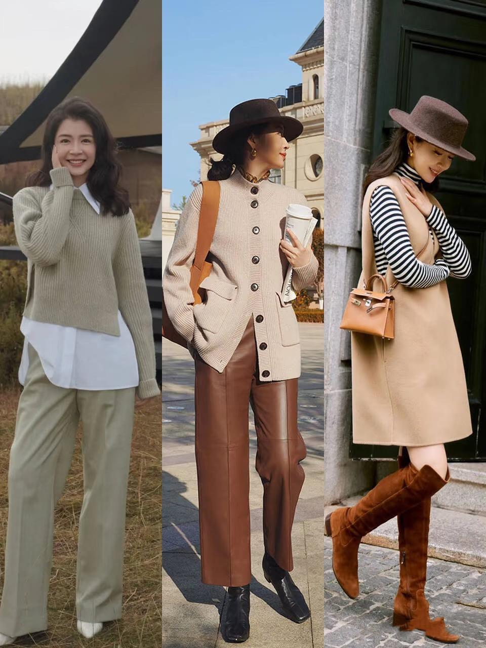 如果穿着半高領的打底衫,我們儘量可以配V領的針織衫來。尤其是大V領的針織衫,疊搭半高領打底衫,會有一種更精緻,優雅的氛圍。