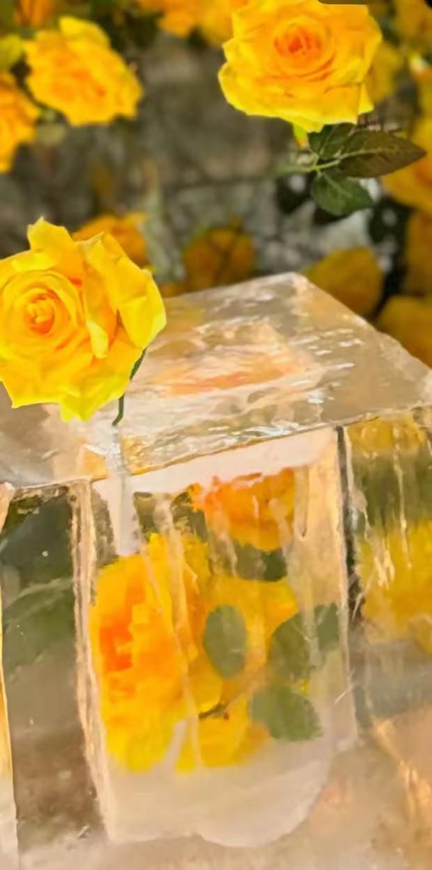 冰封黃玫瑰的近照,真的好有藝術感,太讓人喜歡了。