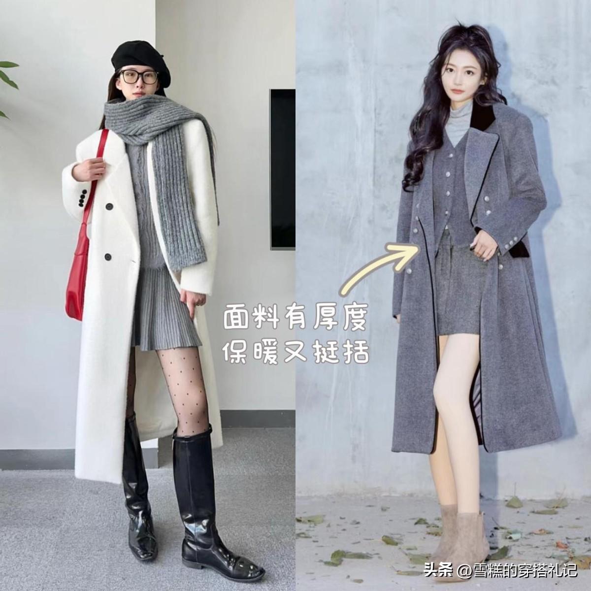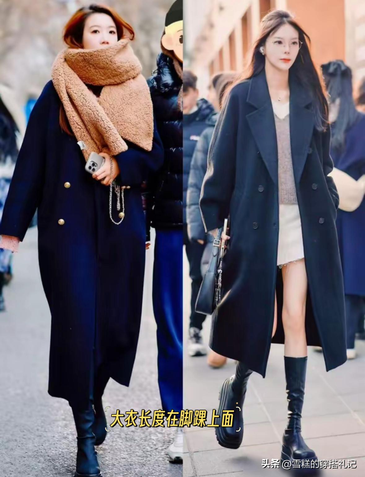 所以大衣的長度儘量別遮住腳踝,剛好過膝蓋或者遮住一半小腿,搭配出來的效果纔會更加時髦輕盈,無論是裹上穿還是敞開穿,都是很顯腿長的。