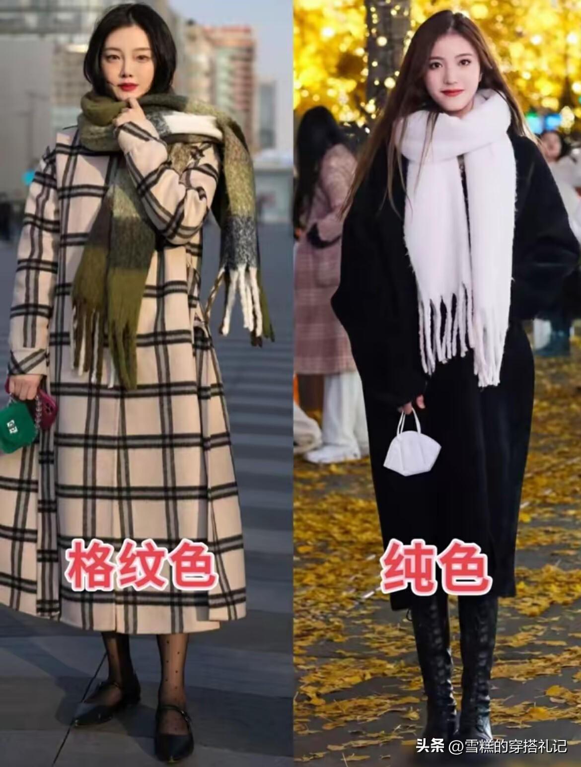 露出雙腿線條的情況下,就不建議露出鎖骨和頸部了,所以搭配大衣的時候佩戴上一條圍巾,既能夠整添保暖性,也可以營造出氛圍感。