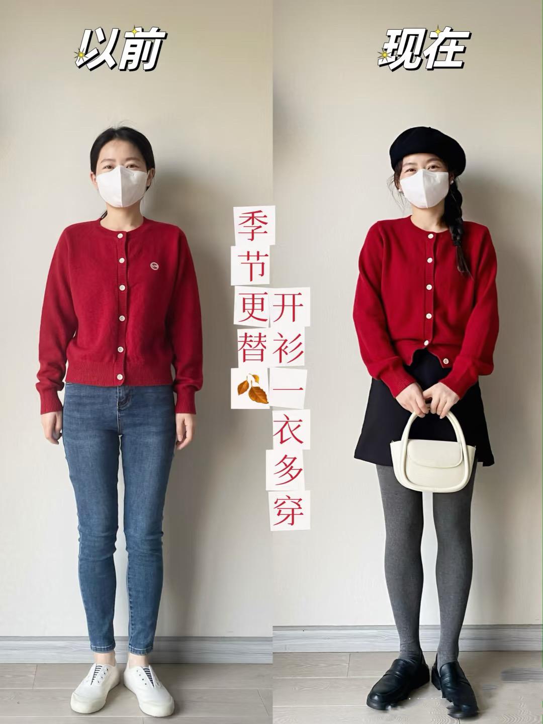 以前的你,也許不懂得如何揚長避短,穿衣搭配上很容易踩雷。同樣是一件紅色針織衫,現在的你懂得了用A字形的半身裙來搭配,俏皮中帶一點小甜美、也更修飾身材。