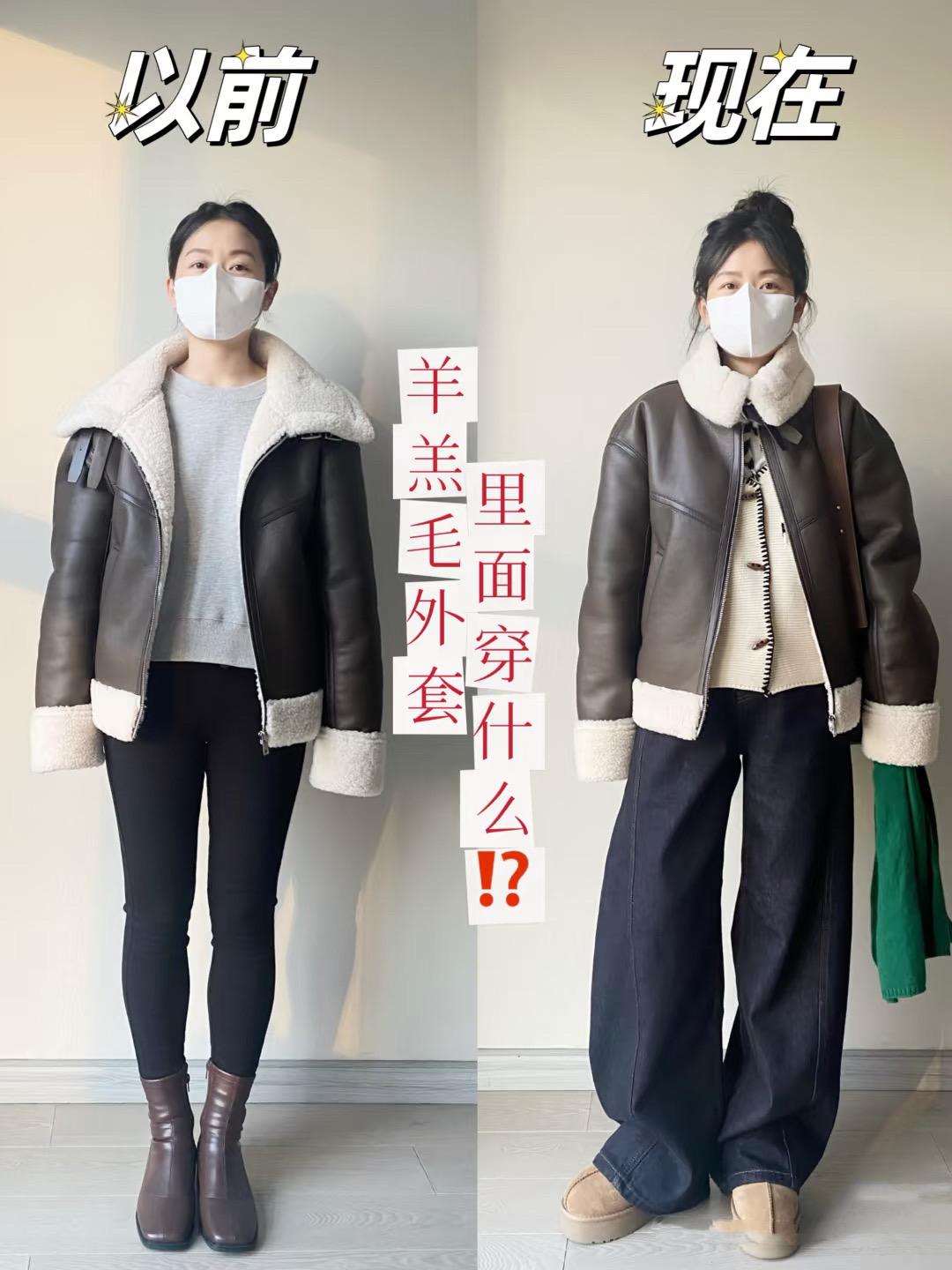 這種羊羔毛外套,我們可以配寬鬆的高腰闊腿褲,很美很颯、也可以修飾腿型。這種高腰的闊腿褲,配上厚底雪地靴,也是簡單大氣的。