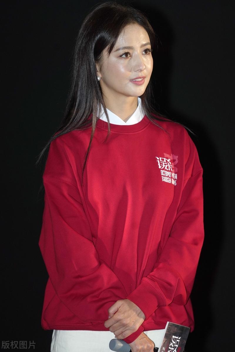 佟麗婭帶火了新年穿搭,紅色衛衣配白褲喜慶減齡,珍珠耳環好優雅