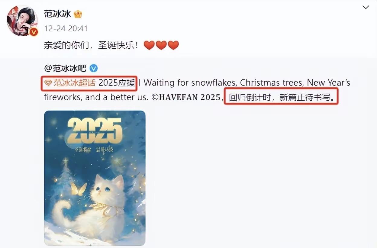 聖誕節的時候,范冰冰在社交平臺發佈了迴歸倒計時、新篇章正在書寫的動態,有網友猜測、范冰冰應該是快要復出了。