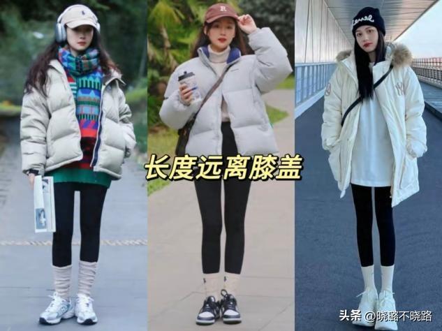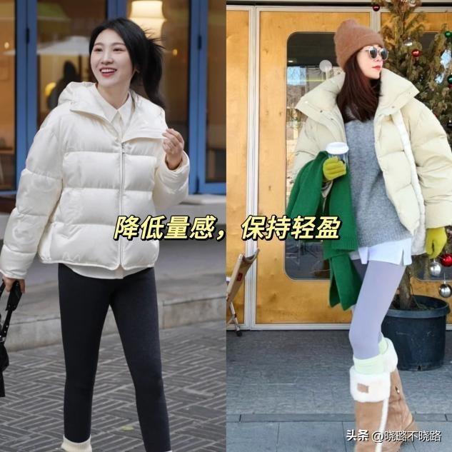 小個子的女人儘量不要選擇太長的羽絨服,意外完全遮擋住小腿後,反而破壞了原有的身材比例。建議多試試蓋住臀部但露出膝蓋的款式,隨便搭配上一條高腰的瑜伽褲就可以優化三七比例,讓人從視覺上達到拔高顯瘦的效果。