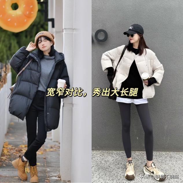 羽絨服配瑜伽褲可以打造出上寬下窄的搭配組合,通過寬鬆的輪廓反襯的腿部線條格外的纖細筆直,能夠最大程度的展現身材的優勢。關鍵瑜伽褲本身的材質就具有一些彈性,能夠緊緊的包裹住小腿,看起來讓小腿的腿圍小了一圈不止,自然而然的達到了修飾的效果。
