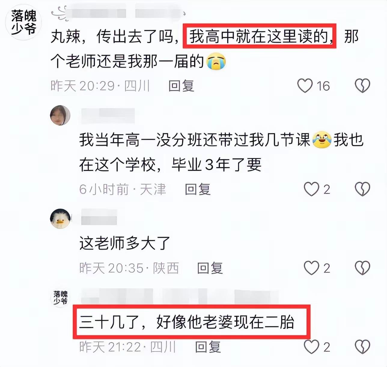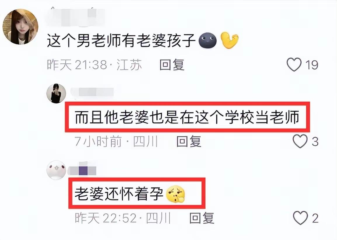 還有網友說,自己高中就是在那裏讀的,這個老師還是他那一屆的。他說男老師三十好幾了,現在老婆正在懷二胎。
