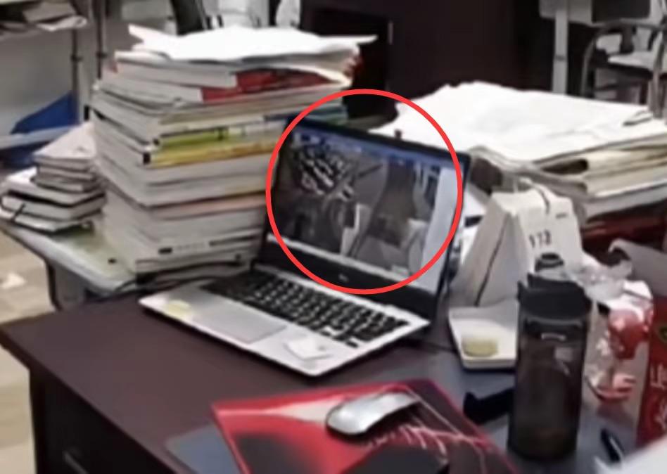看男老師的電腦屏幕,似乎像是各個位置的監控圖。男老師應該不知道這個辦公室被裝監控了吧,不然也不敢有如此大膽的行爲。