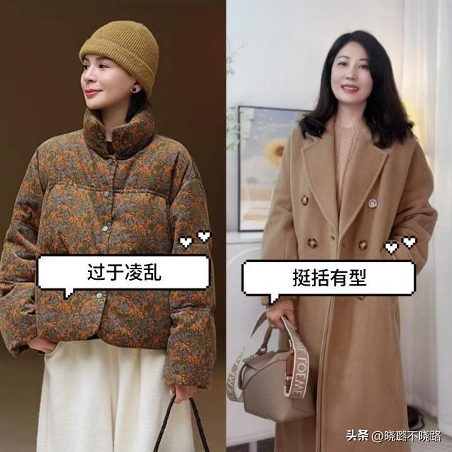 爲什麼勸中年女人多穿大衣,少穿羽絨服?看完這3組對比你就懂了