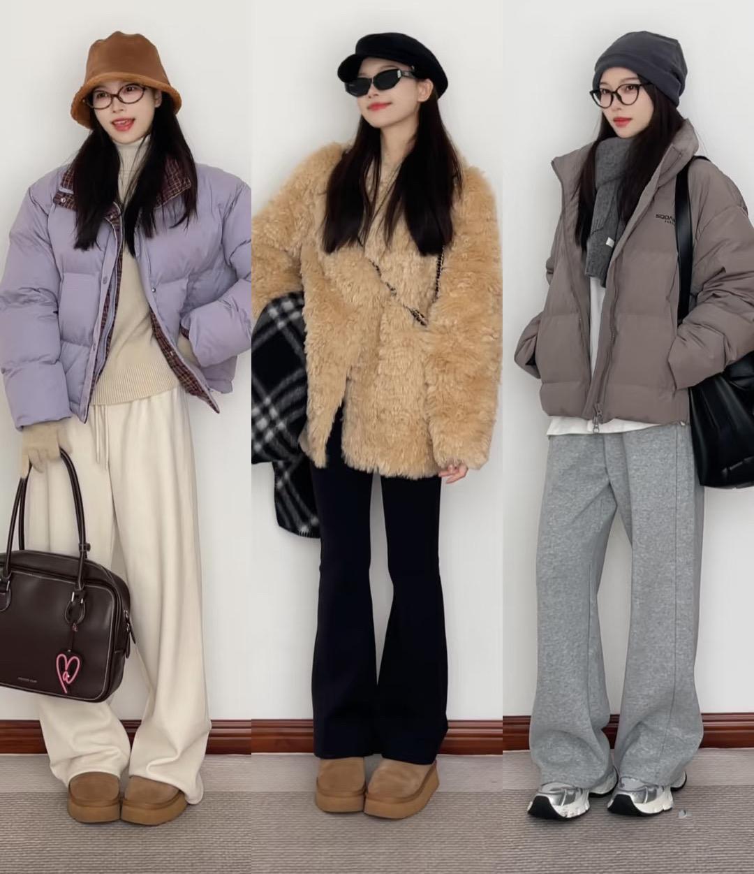 一定盆帽、貝雷帽、或者針織線帽、以及毛線的圍巾,都可以給冬季穿搭增強氛圍。搭配短款的羽絨服、毛毛外套,慵懶又保暖。