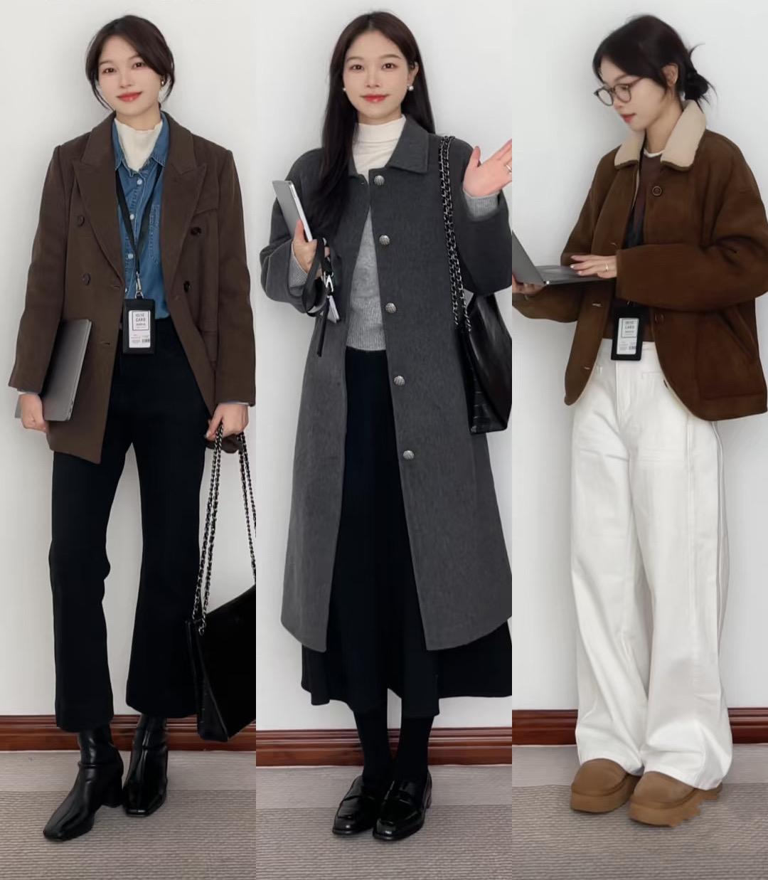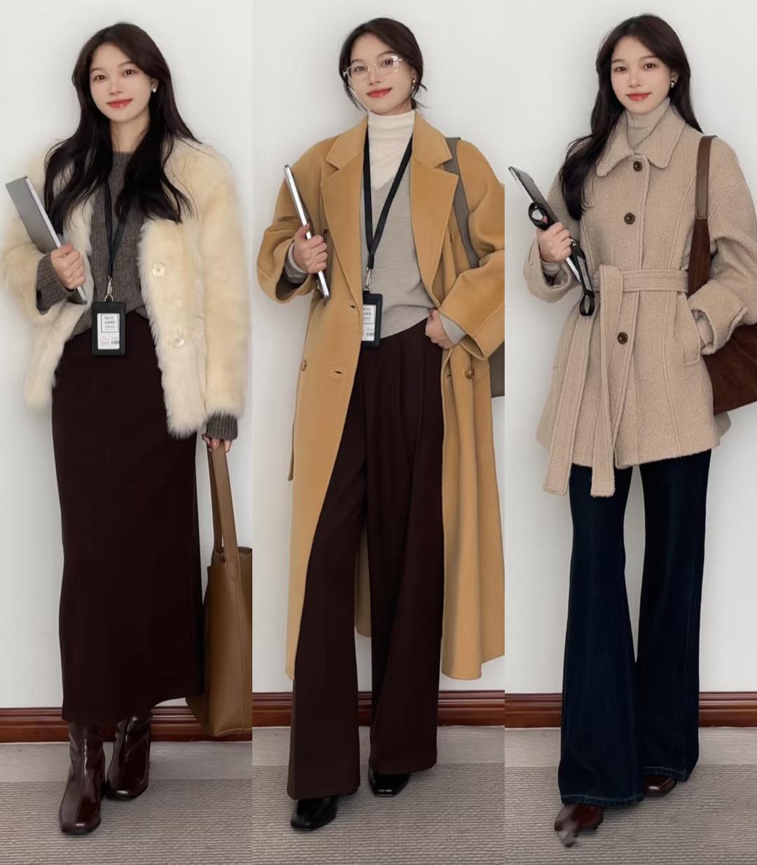 比如合身的西服外套、毛呢大衣、修身的直筒褲、打底衫,都可以爲我們的穿搭加分。合身的大衣穿起來不鬆垮、也不邋遢,更顯精神。