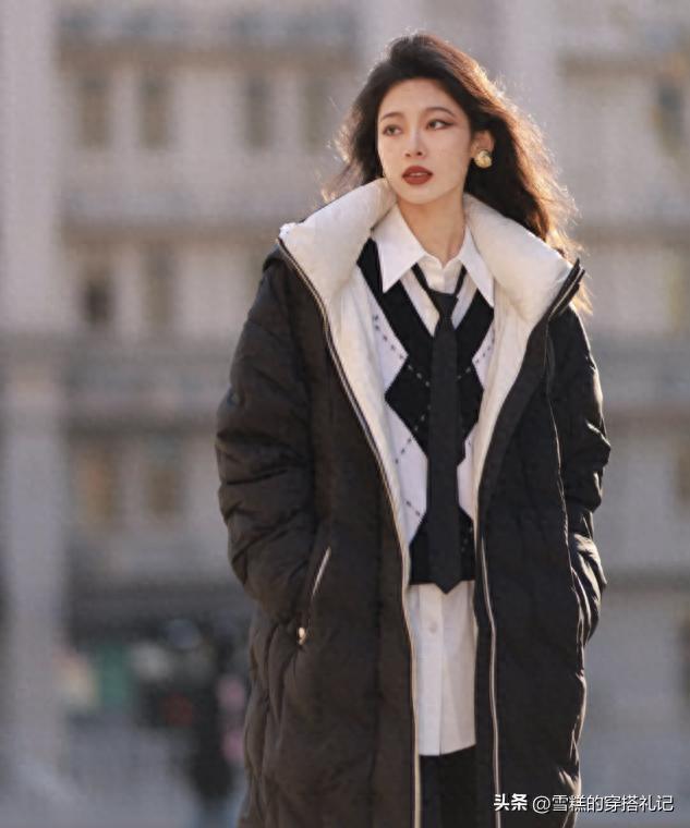 下半身搭配無痕褲的時候,其實已經沒有了太多的技巧可以發揮,所以大家可以在羽絨服的搭配上加入一些技巧,比如疊穿等方式。選擇挺括的襯衫和柔軟的毛衣,疊加在一起格外的保暖,而且層次也會更加豐富。擔心過於厚重,也可以學上海女生選擇V領的馬甲進行疊穿,降低臃腫感。