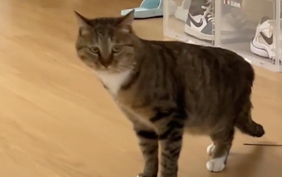 當妹子跑下樓將貓咪放在地上後,整個人都虛脫了,看着來不及換鞋的雙腳,妹子有一種死後劫生的幸福感。