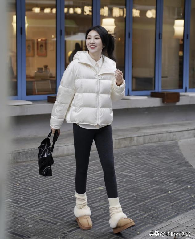 在穿羽絨服的時候,可一定要注意下裝的搭配,千萬不要穿修身的打底褲。打底褲穿起來會緊貼腿部的皮膚,反而將胯寬、臀肥、腿粗、腿形不直等問題都暴露出來,讓你看起來更加肥胖。