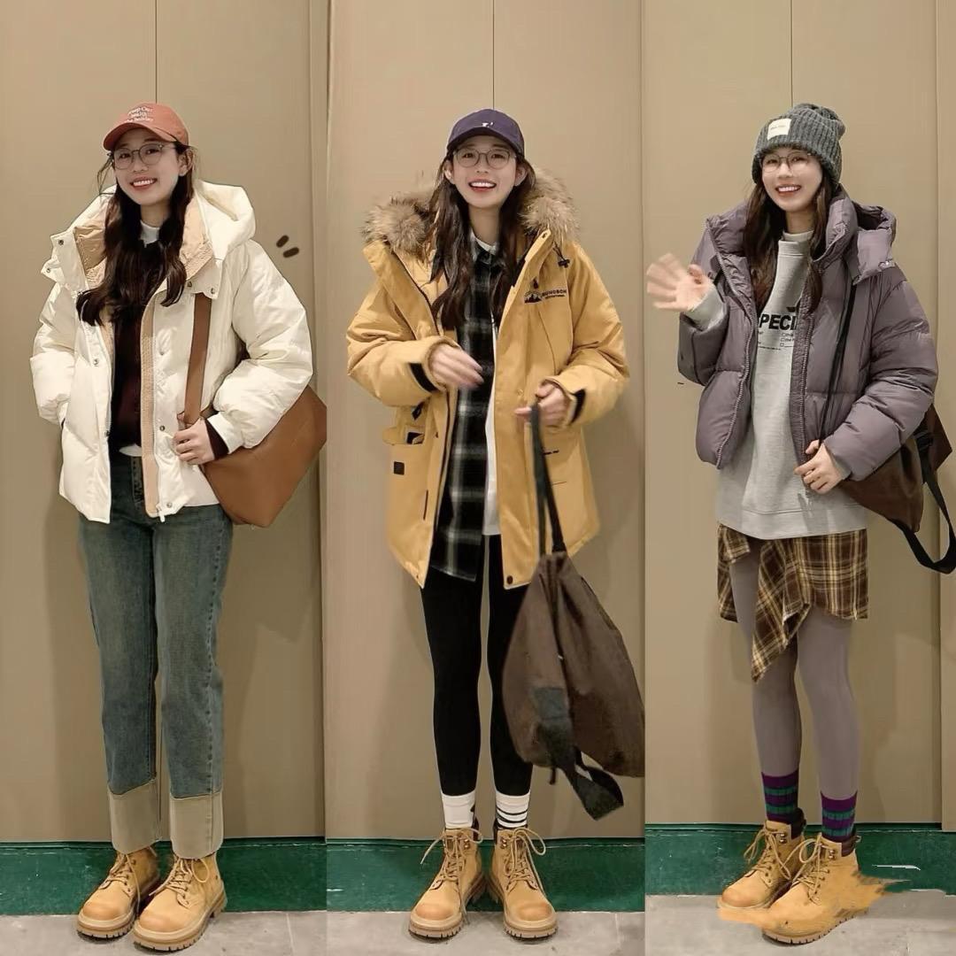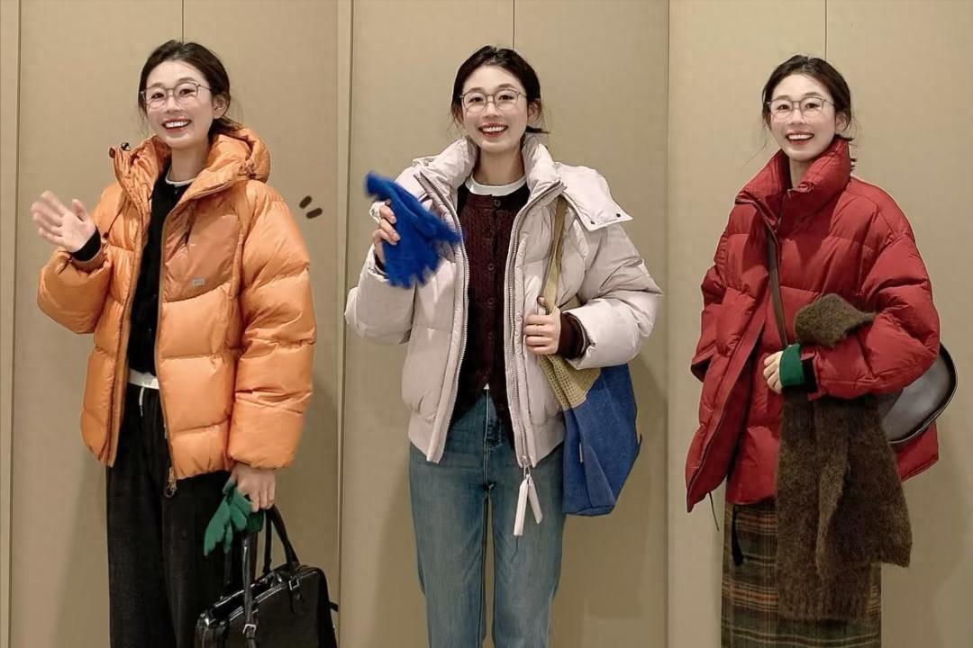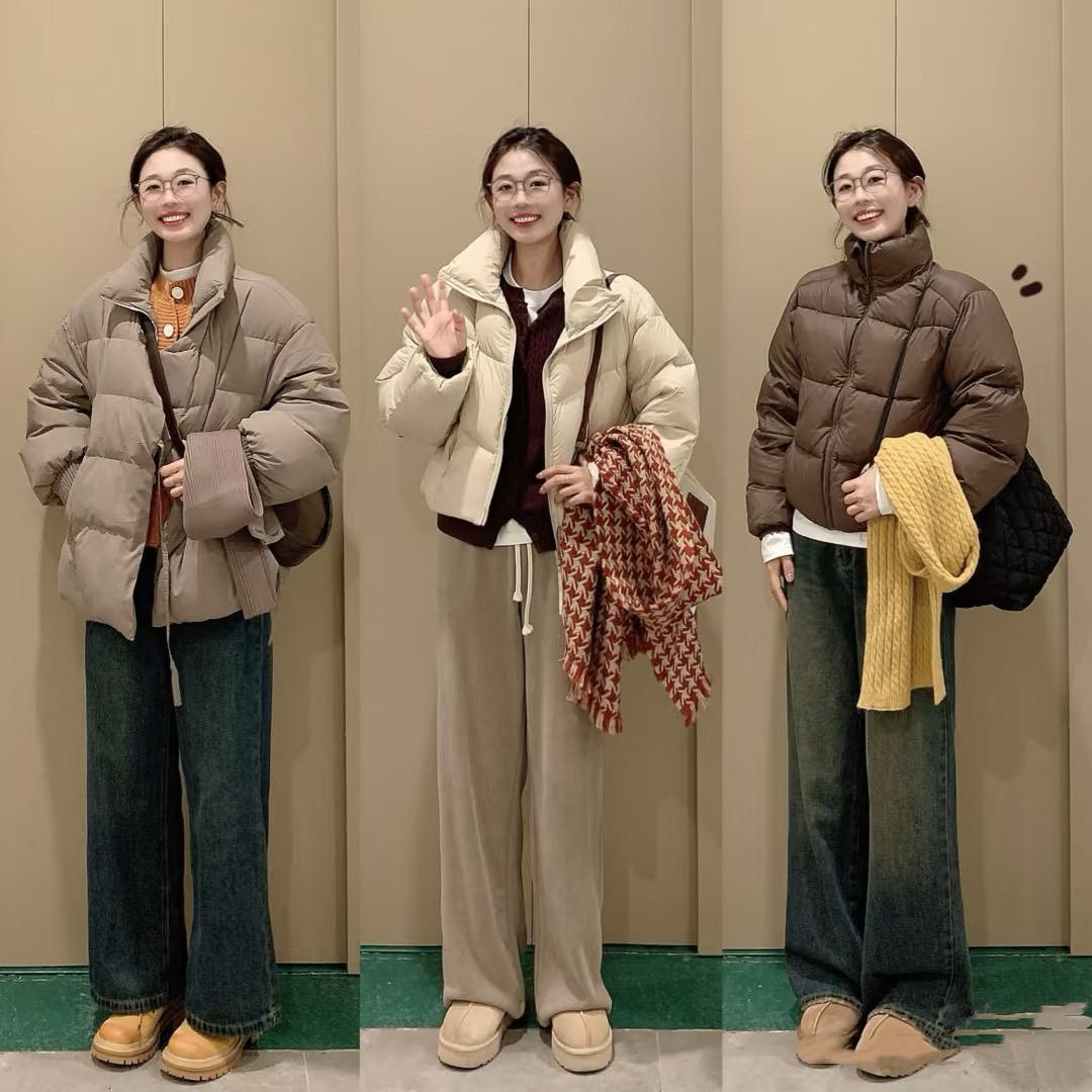 相對於毛絨外套,短款羽絨服更保暖,有一種甜美且慵懶的氣質。尤其是棕色、米色、杏色的短款羽絨服,都更時尚。