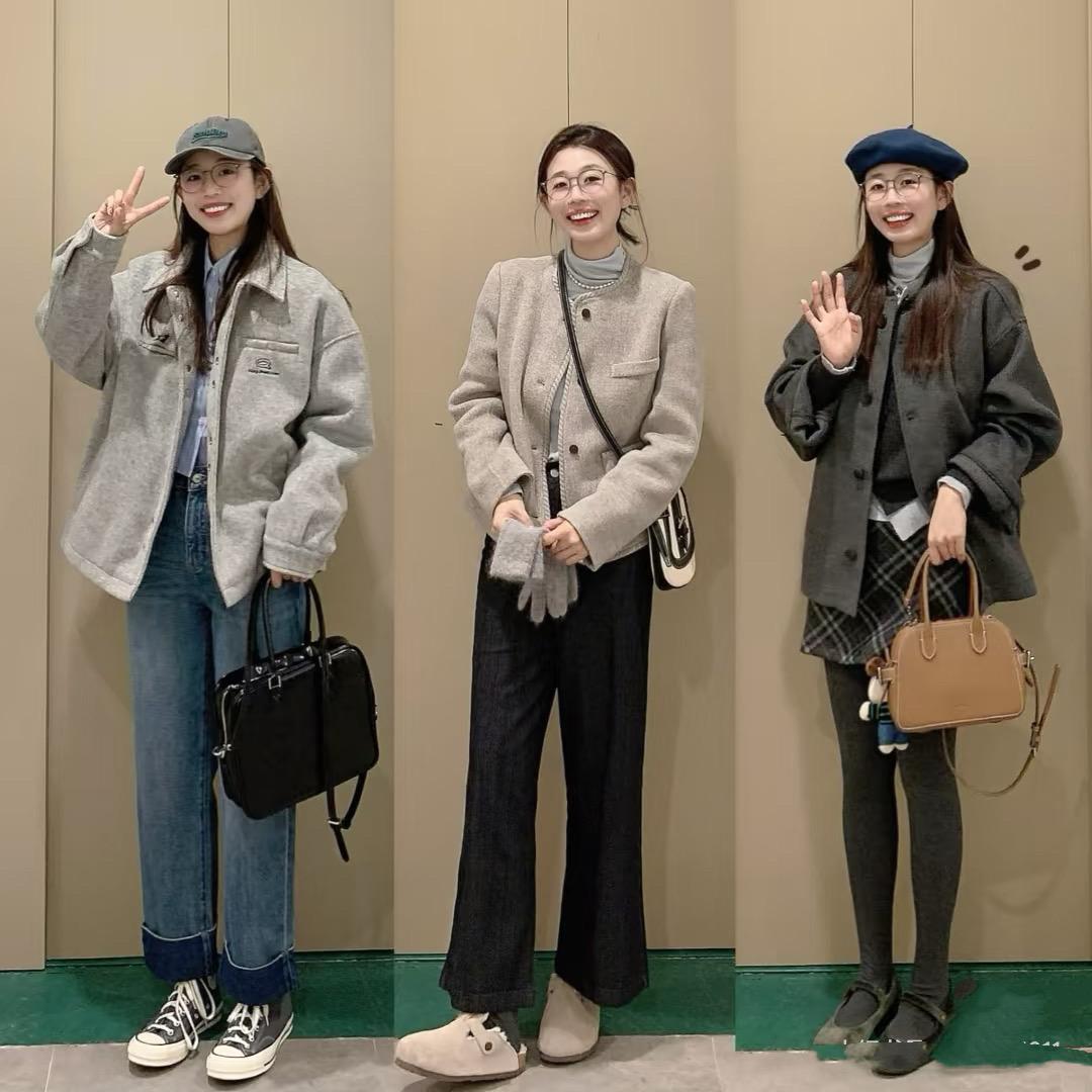 對小個子女生更友好的一組穿搭,短款的毛呢外套精緻又凸顯品味。短款毛呢外套,讓小個子的穿搭可塑性更強。