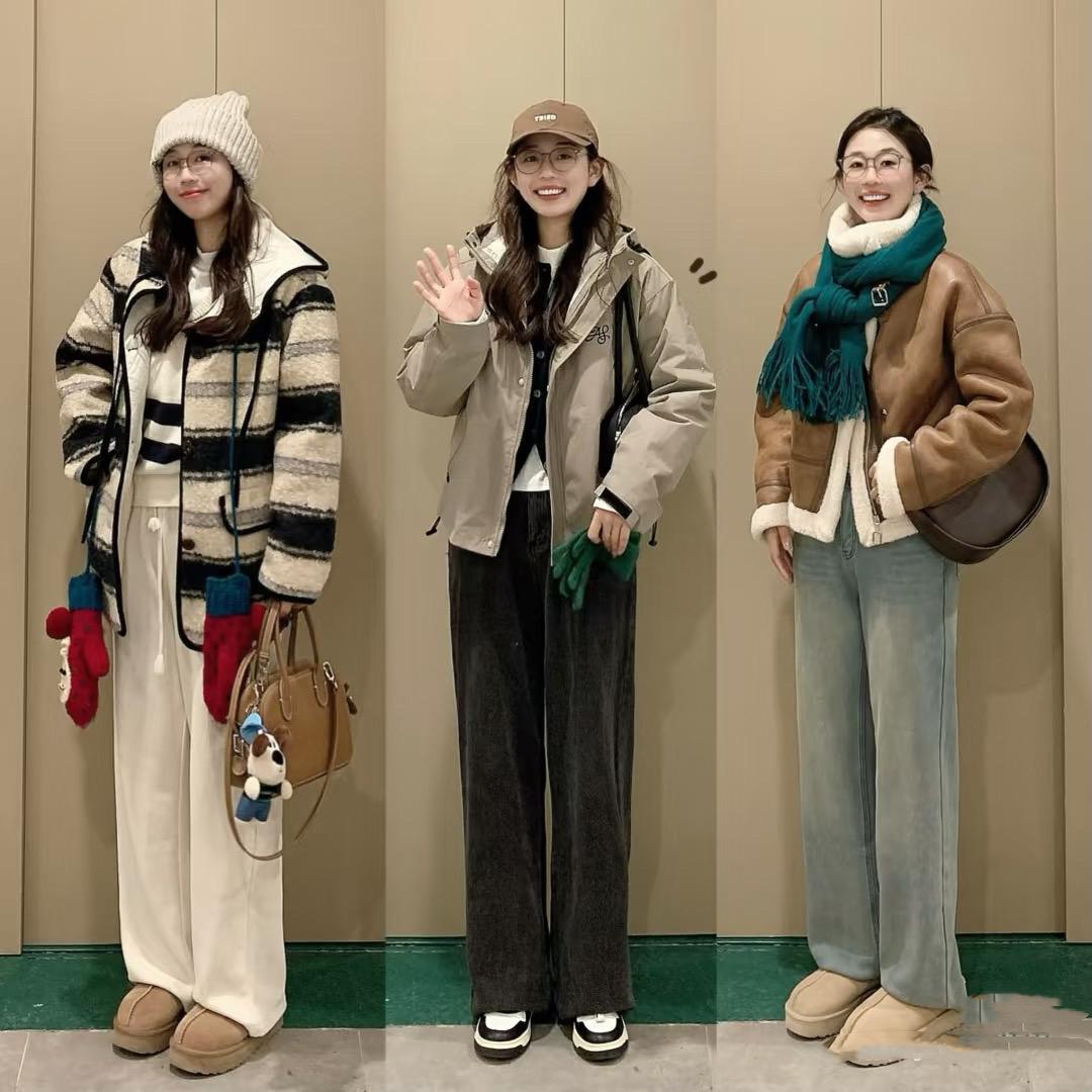 利落保暖、顯高又不壓個子,這種短款毛絨外套+高腰直筒褲的搭配,對於小個子女生太友好了。