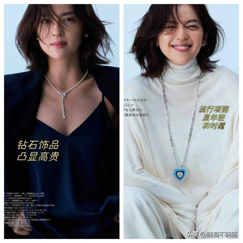 同時在日常的造型中,離不開配飾的點綴。我們可以直接將目光放在鑽石、珍珠或者寶石系列的首飾上,可以直接增加造型的高級感,顯得韻味十足。不過想要造型更顯年輕,一些流行的飾品也可以嘗試,但要注意數量以及量感的大小哦~