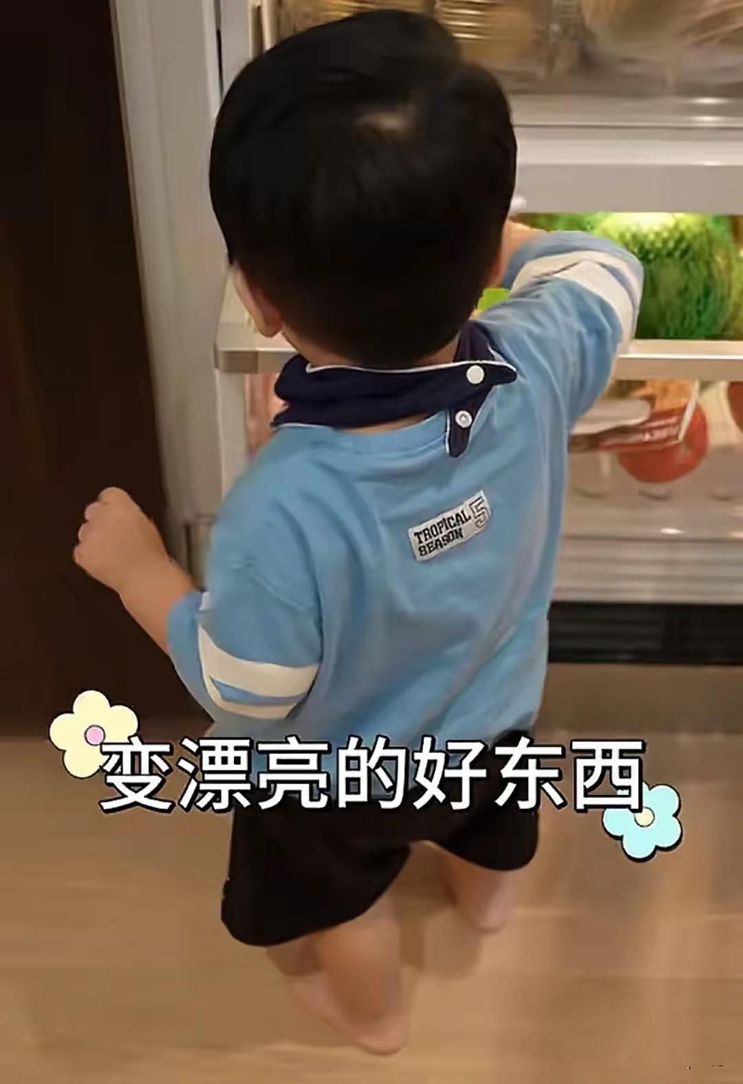 李念的小兒子也出鏡了,她的三胎兒子已經會走路,光着腳丫、可可愛愛的,看背影有點肉嘟嘟的,是個胖胖的小寶貝呢,