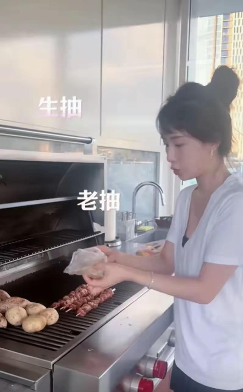 平日裏李念也會下廚做飯,是非常接地氣的“闊太”。看她在廚房裏忙活,非常嫺熟的模樣,就知道是經常進廚房的女人。