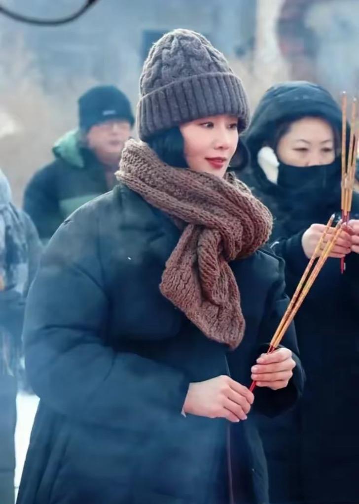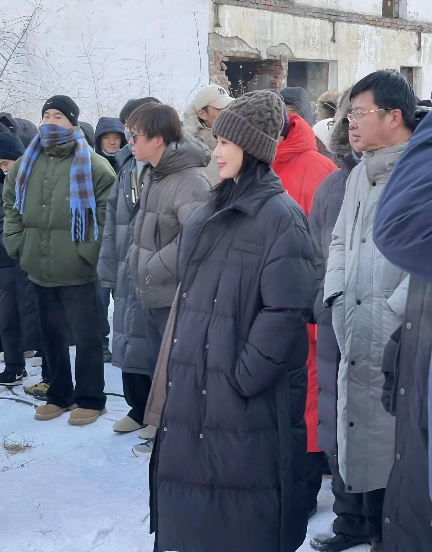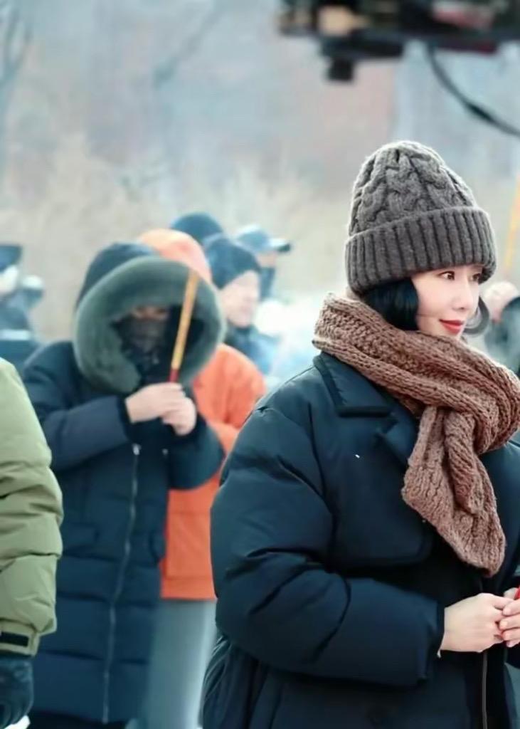 冬天那麼冷,一件“棉被款”的羽絨服真的可以禦寒。其實劉亦菲並沒有什麼偶像包袱,當地溫度應該特別低,地上都是雪。