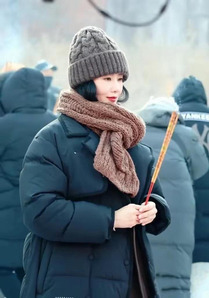 這樣的劉詩詩,特別老氣。她才37歲呀,按理說歲月的痕跡不應該這麼重。況且她還化了妝、戴了帽子和圍巾來修飾。