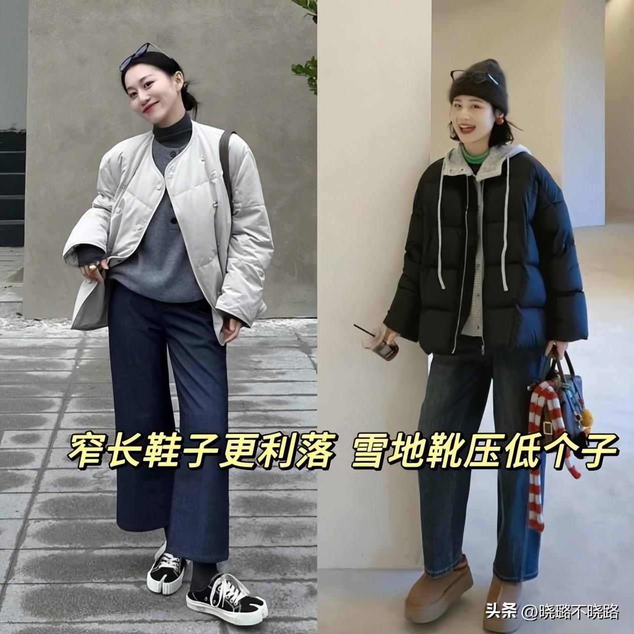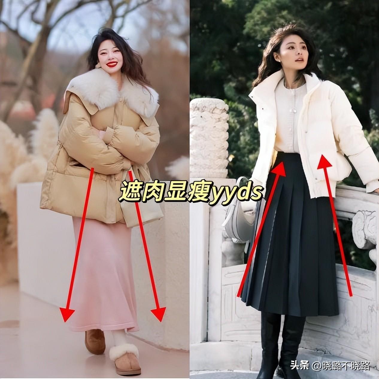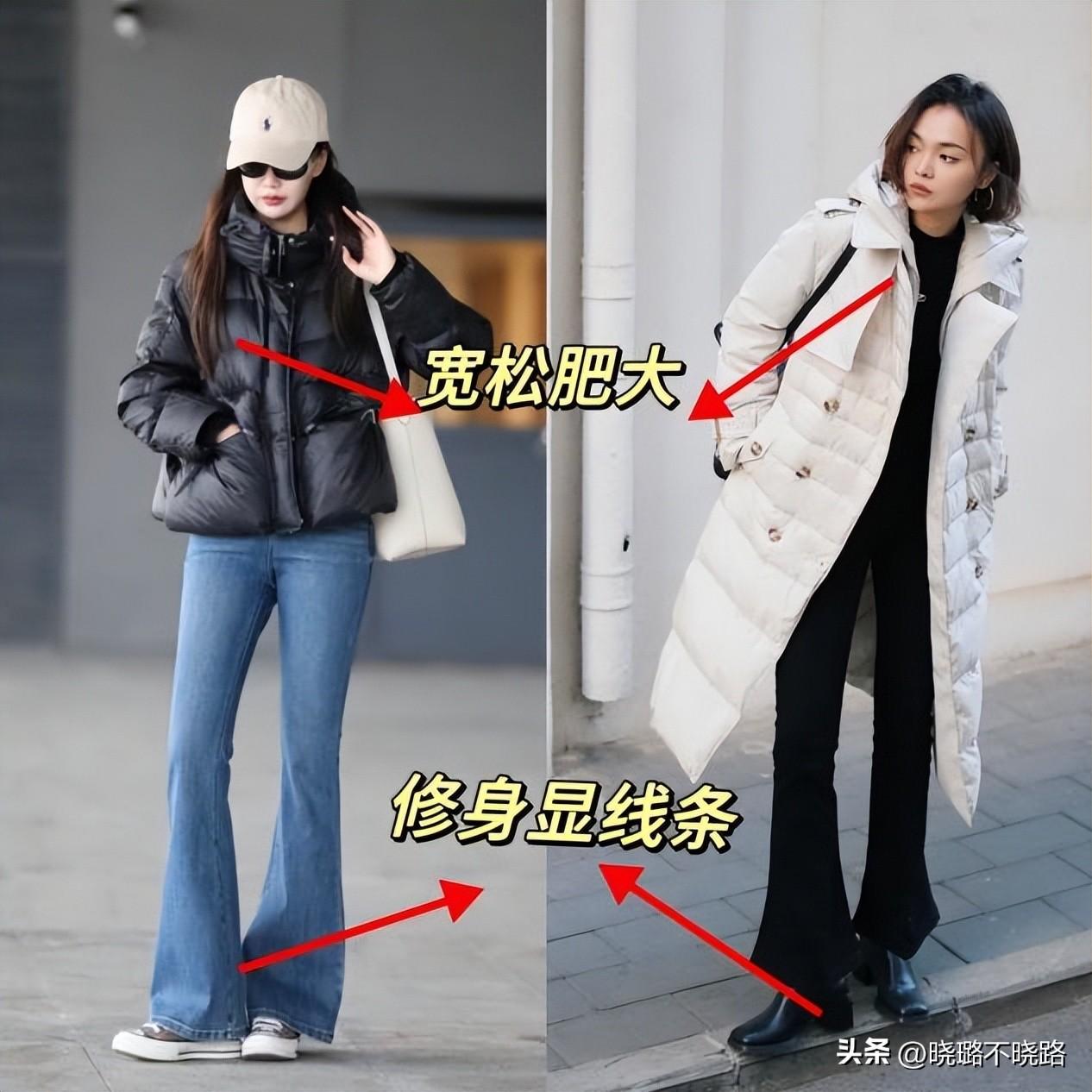 (1)羽絨服搭配:半身裙優雅,牛仔褲休閒,玩轉風格