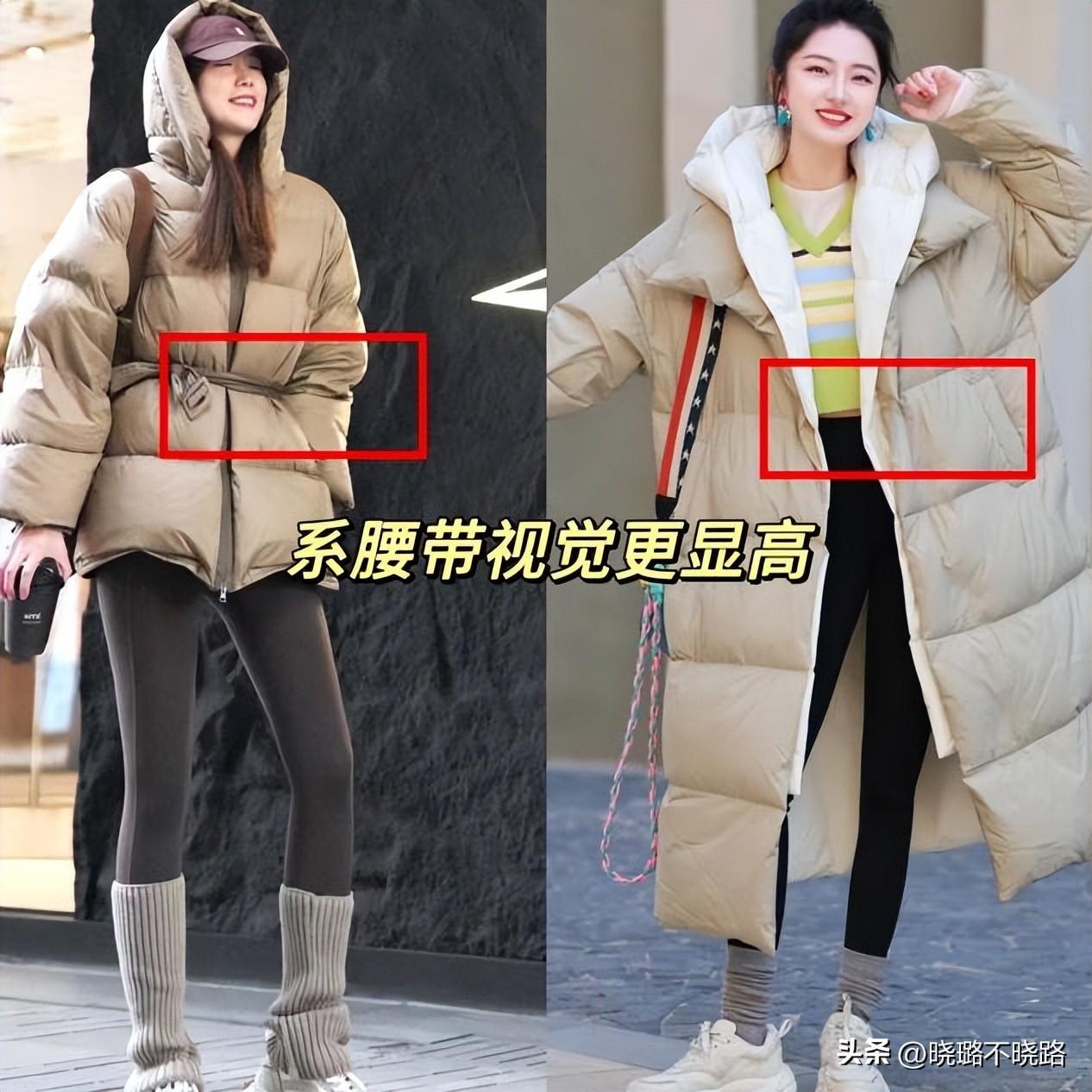 梨形身材以及直筒型身材的女人直接閉眼入繫帶羽絨服,將腰帶打一個蝴蝶結,瞬間製造出了纖細的腰線,剛好的劃分整體的比例與層次,顯得更加高級優雅。