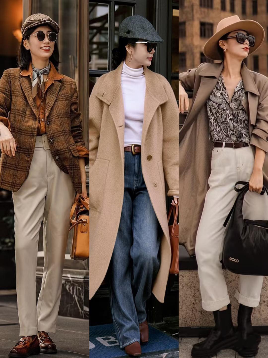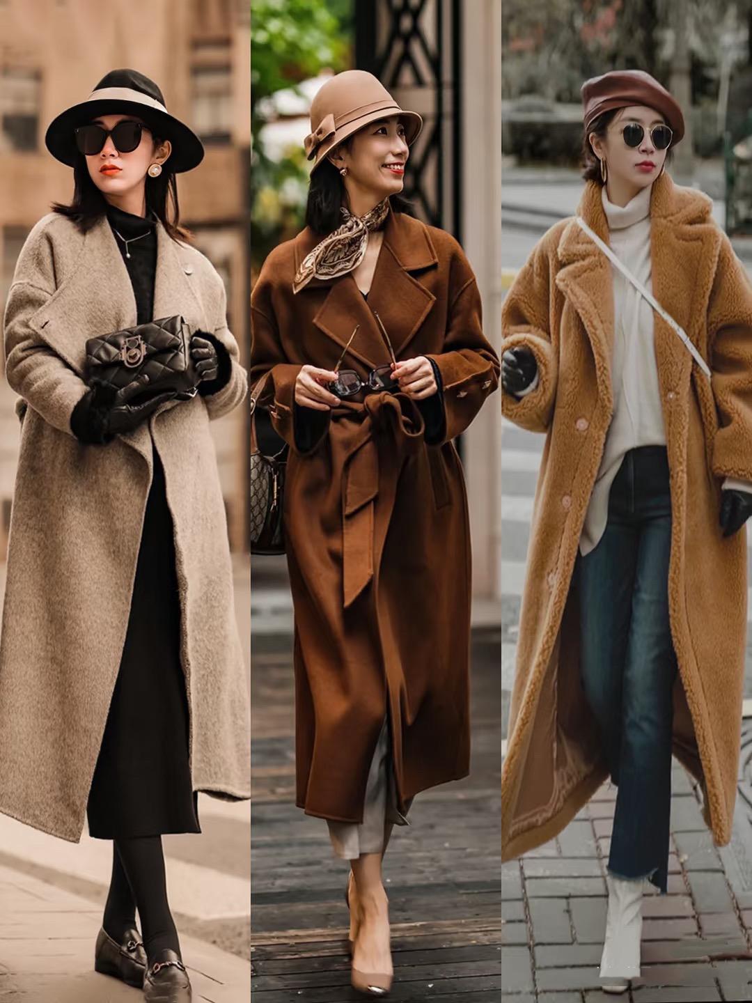 顏色偏深的焦糖色、或者稍微淺一點的沙駝色,都屬於棕色系範疇。冬天裏的棕色系穿搭,很溫暖也更具柔情。