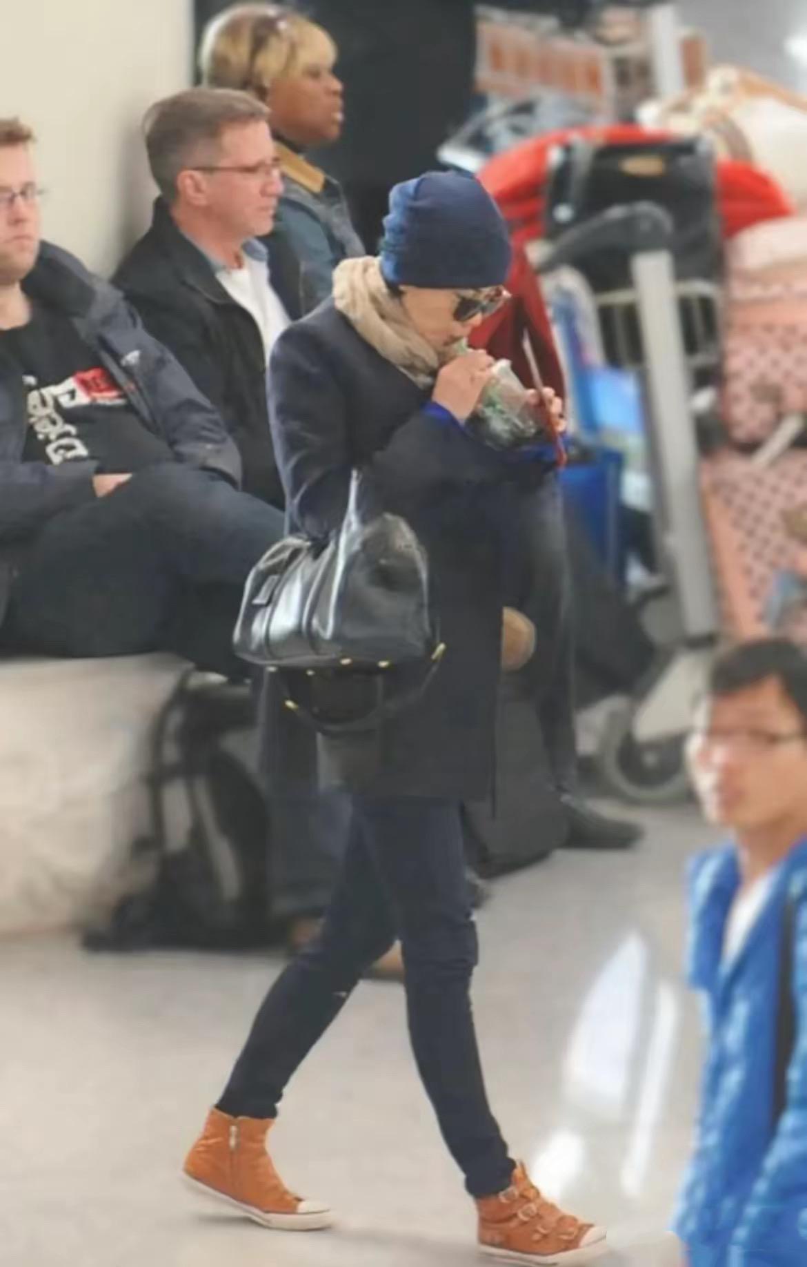 私下裏的王菲,其實一點明星架子都沒有。她一個人走機場,還低頭喝着奶茶,就像個路人一般。