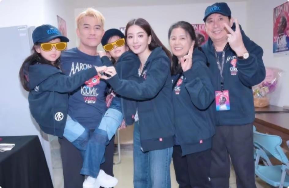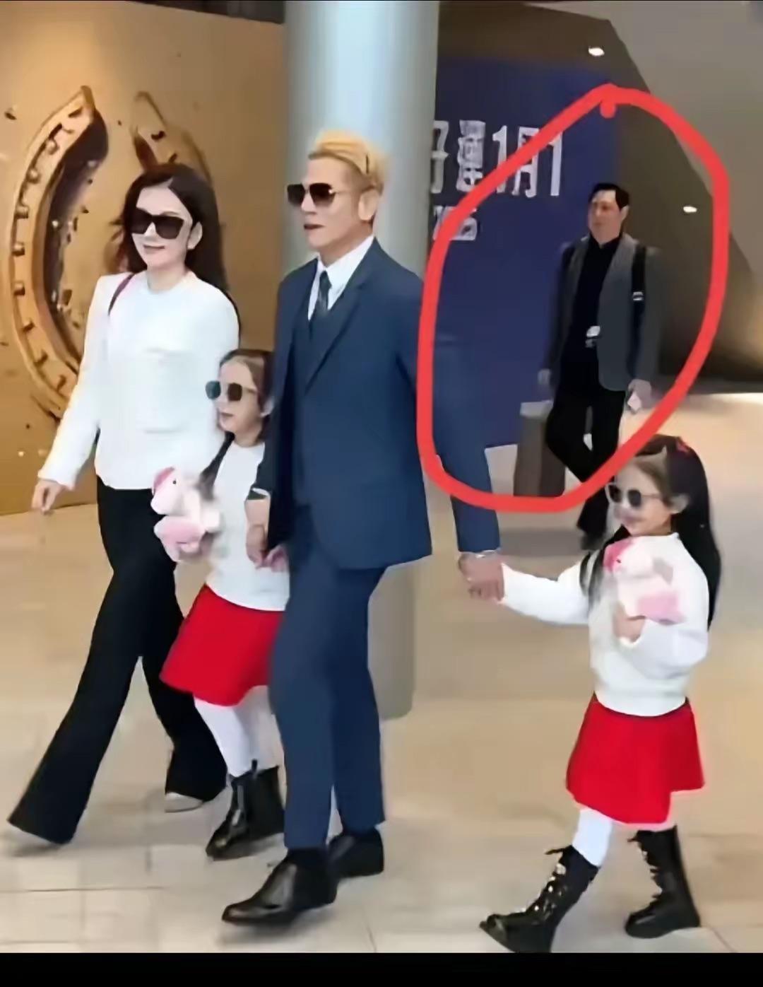 也有網友拍到郭富城一家出行的照片,他們一家四口打扮的又美又酷走在前面,岳父則揹着大包小包走在後面像個助理一般。