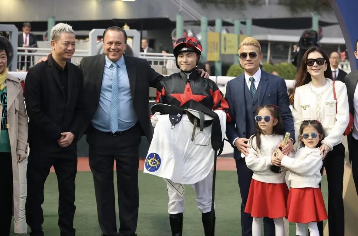 郭富城的愛馬奪冠後,他們一家和上臺合影留念,這畫面太養眼了。美女帥哥的組合,真是妥妥的一家人。