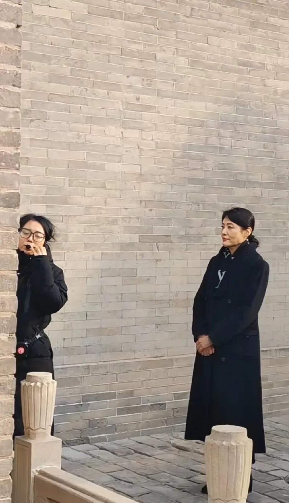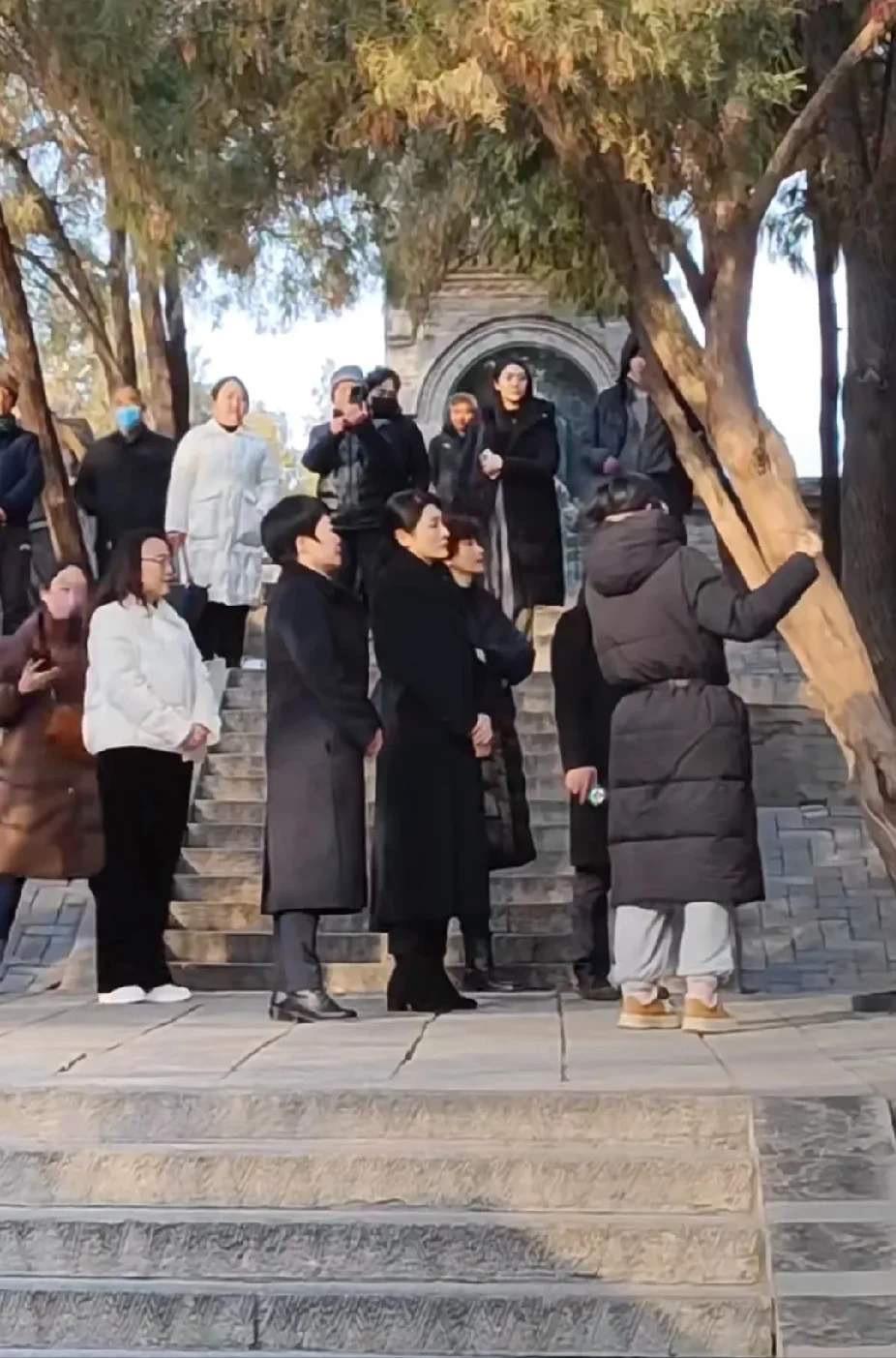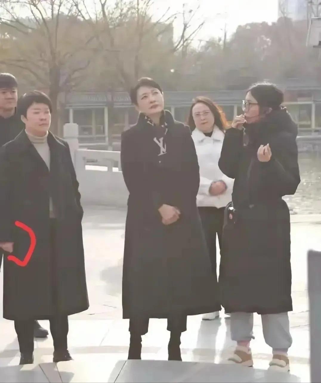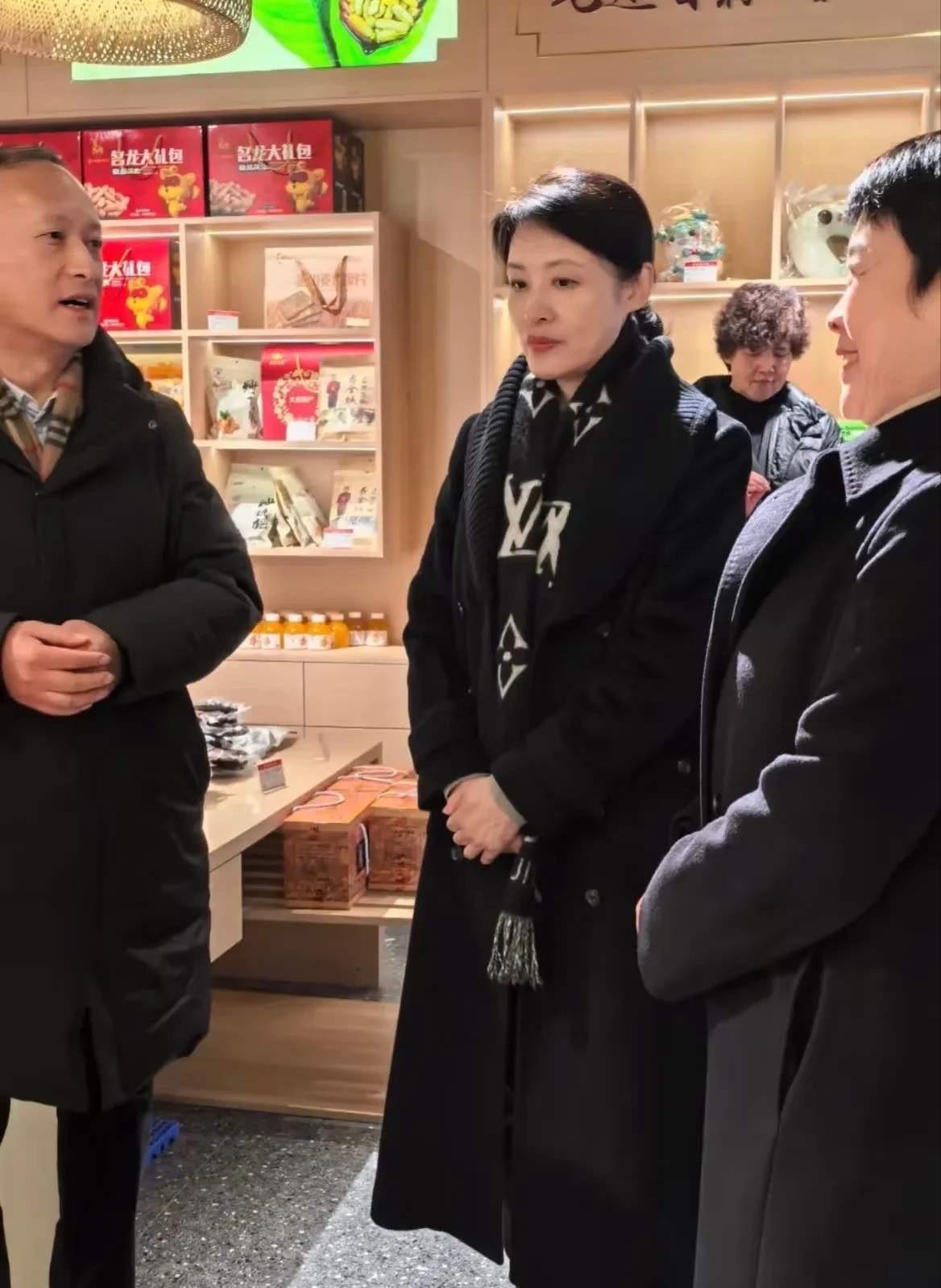 周濤穿着黑色大衣,認真聽着講解。她時而表情凝重、時而面露欣慰,可以看出對雞窩頭女士的講解很滿意。