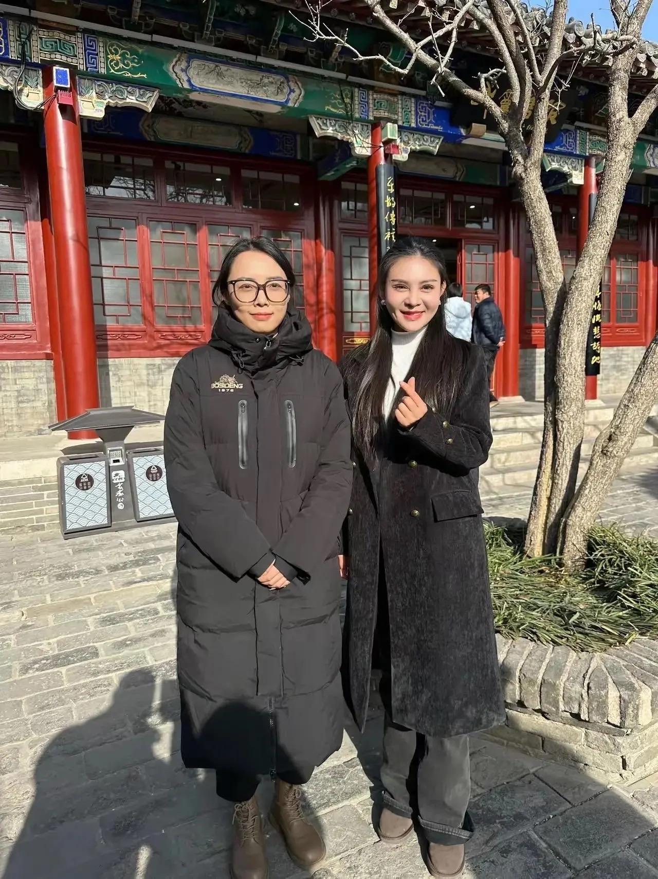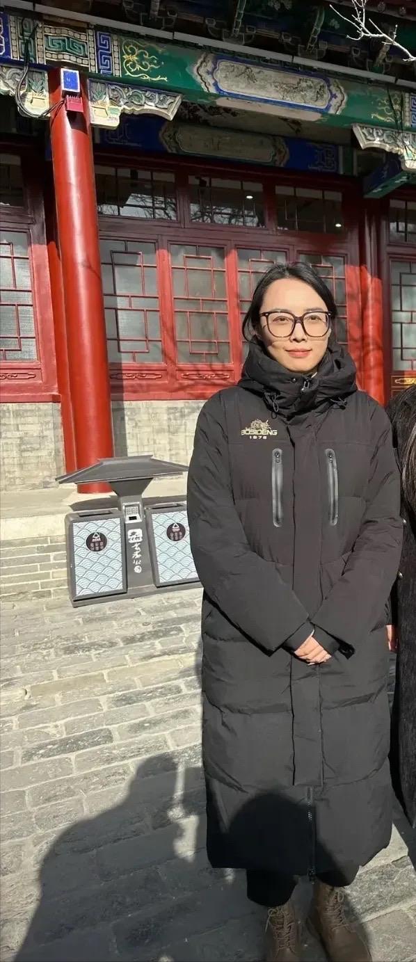 雞窩頭你是,穿了一件黑色長款羽絨服,咱也不知道是特意繫了腰帶、還是爲了佩戴講解設備,所以在腰裏勒了皮帶。