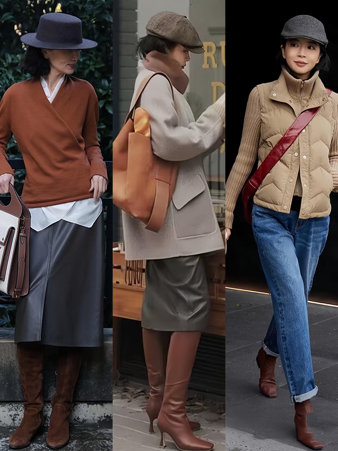 冬天裏的皮靴,真的是帥氣又拉風。尤其是棕色長款皮靴,修飾腿型、也提升精緻美。