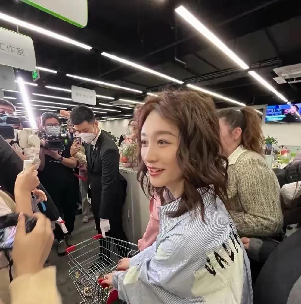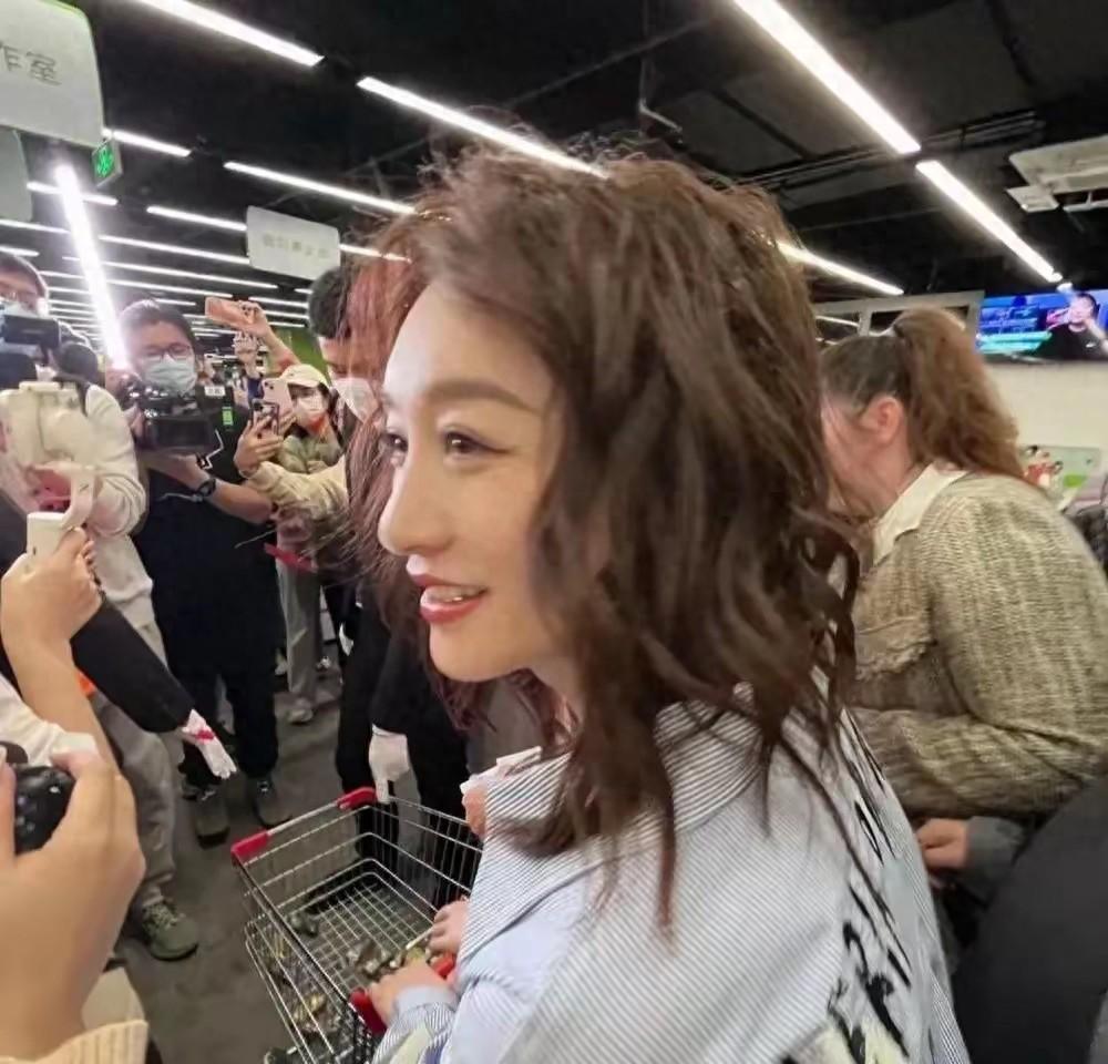 應該是在一場綜藝節目中,李小冉被網友偶遇,還拍下了絕美的照片。李小冉推着購物車、在超市裏購物,周圍都是舉起手機拍照的觀衆。