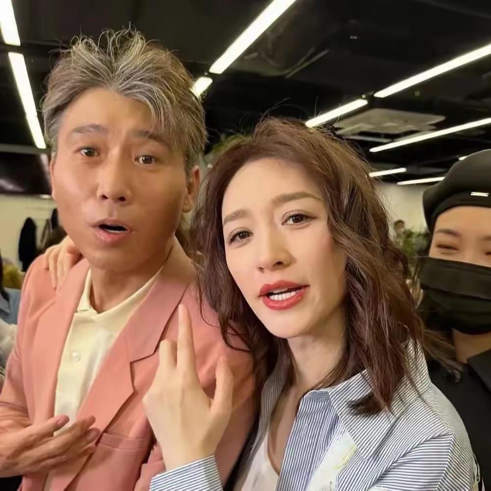 48歲的李小冉和李乃文同框了,看起來李乃文非常顯老。頭髮花白、整個人也比較憔悴,穿着粉色西裝、Polo衫,有一種老幹部風。