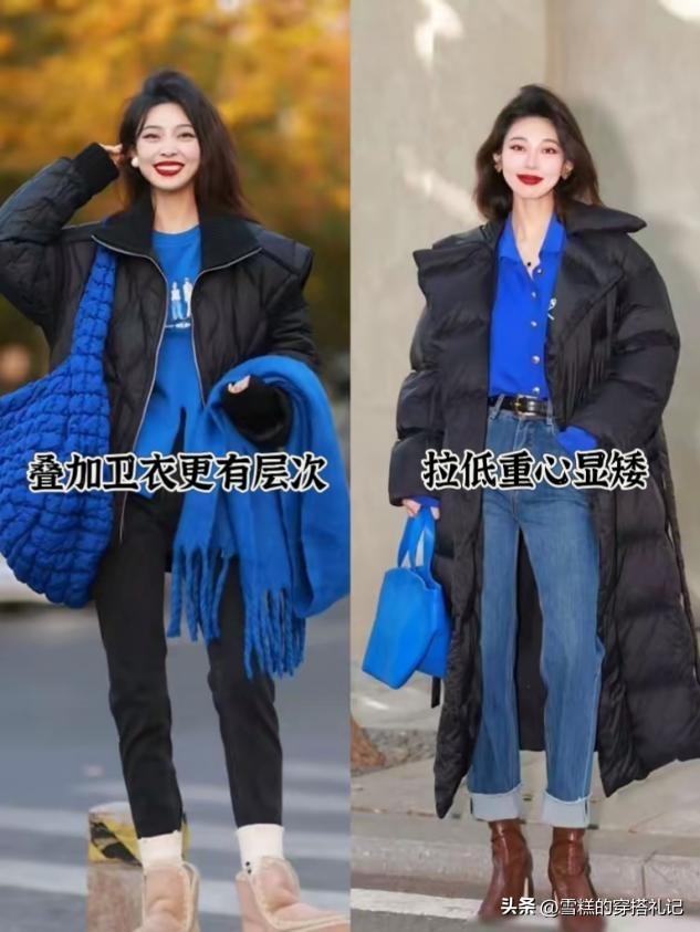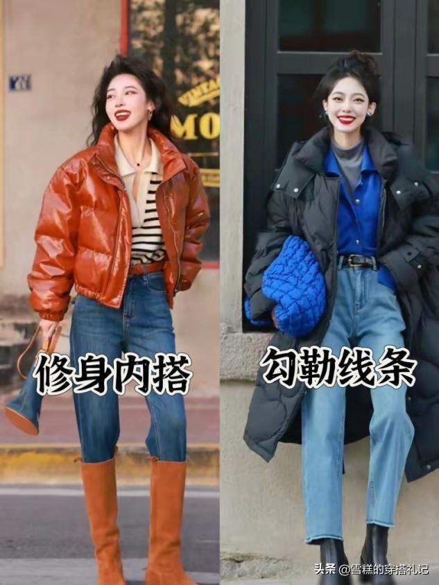 雖然羽絨服本身要比棉服更加輕盈修身一些,但是爲了提高上身的顯瘦效果,建議大家將內搭換成修身的毛衣或者打底衫,壓縮內搭的面積之後,整個人看起來會更加苗條纖細。而且在將羽絨服敞開穿時,偏修身一些的打底衫,也能夠和羽絨服的輪廓,形成寬窄對比,反襯出纖細的身材曲線。