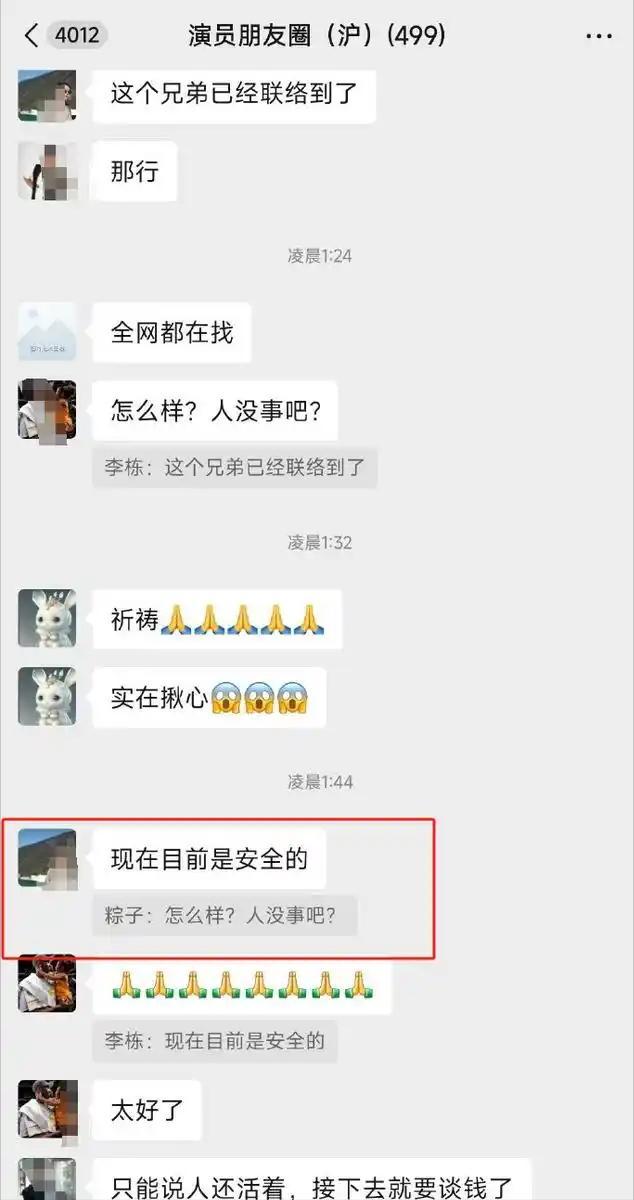 在演員朋友圈的羣裏,有消息稱人已經聯繫到了,他現在是安全的。只要人還活着,就是最好的結果。