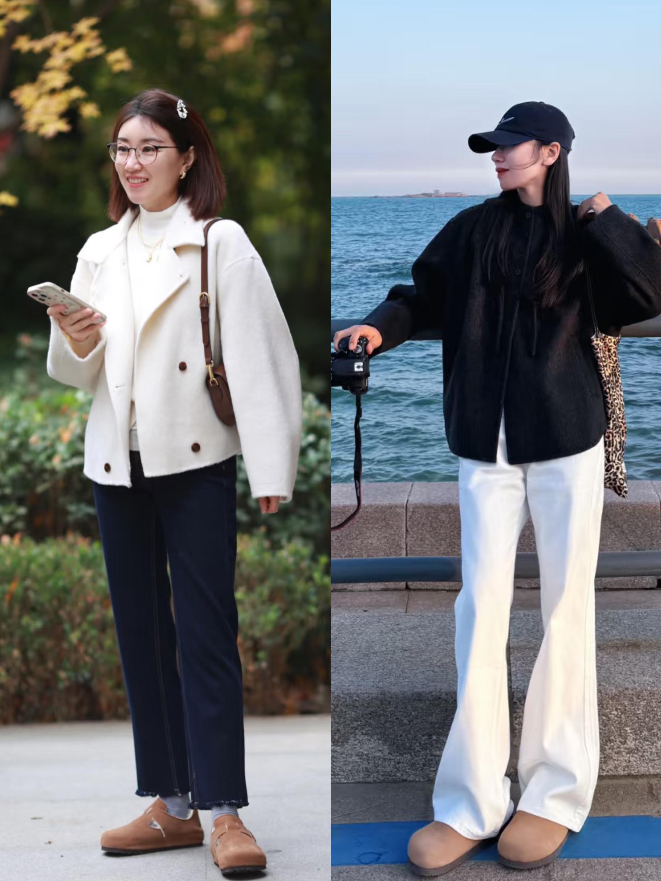我也是到了年底才發現,冬天裏的“直筒褲+勃肯鞋”是真的火。那種鬆弛、自在、慵懶、大氣的風格,太讓人喜歡了。