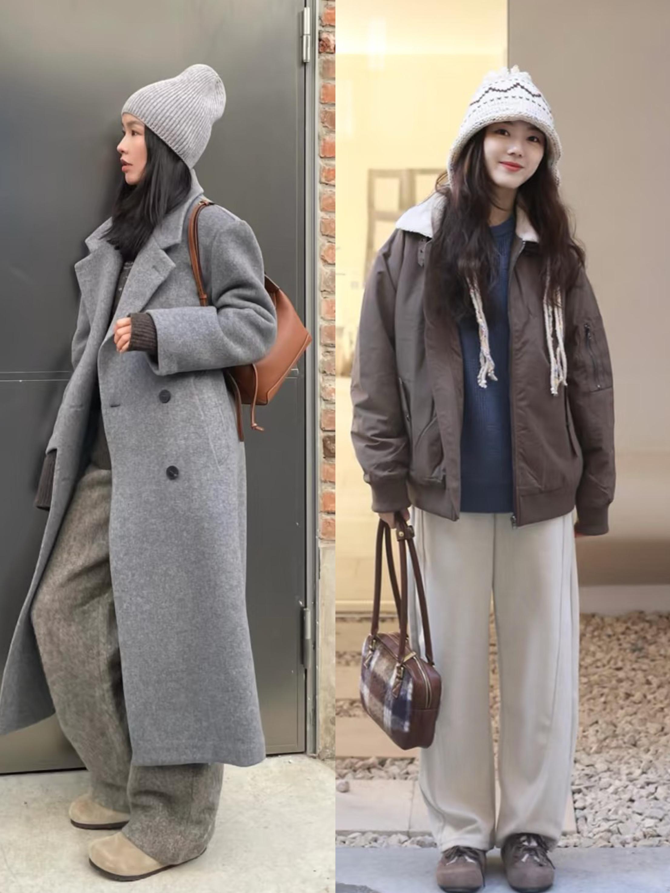 如果是個子比較高挑的女生,在這個冬天完全可以嘗試用拖地長度的直筒褲來凹造型,寬鬆的褲型、舒適又大氣。