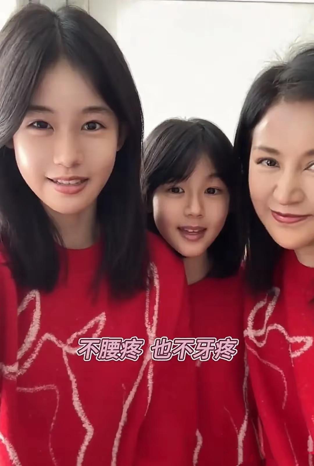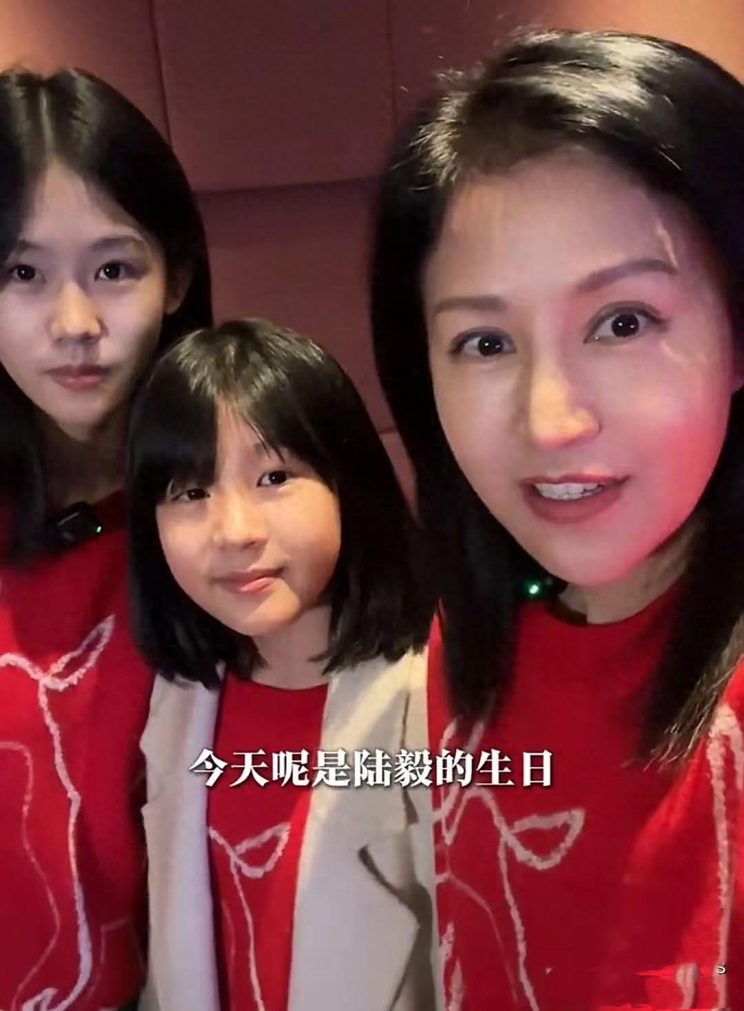 大女兒貝兒、已經出落得亭亭玉立了,大眼睛特別像媽媽。小女兒小葉子,則更像陸毅多一點,笑起來特別的甜。
