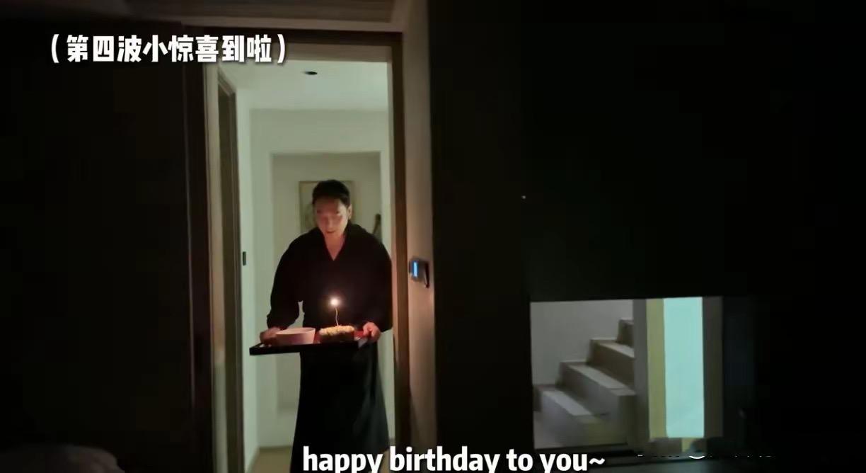 第四波小驚喜,林依輪端着生日蛋糕和長壽麪來了,他還唱着生日歌,這場景太溫暖了。生活平淡幸福,日子偶有驚喜,這就是最幸福的模樣吧。