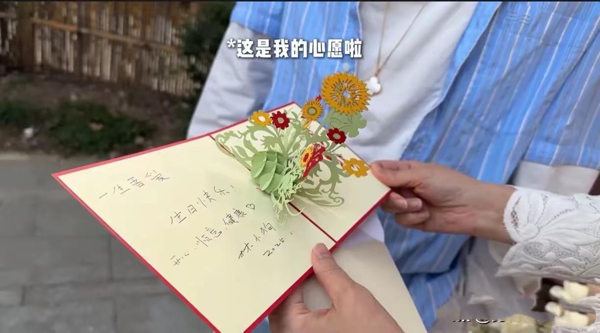 非常有儀式感的,林依輪還準備了生日賀卡。掀開賀卡,是立體的花朵,真的好浪漫,這些小心思不知道在哪雪來的,太會討老婆開心了。