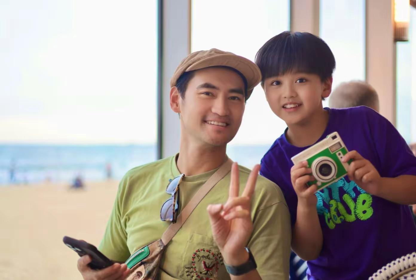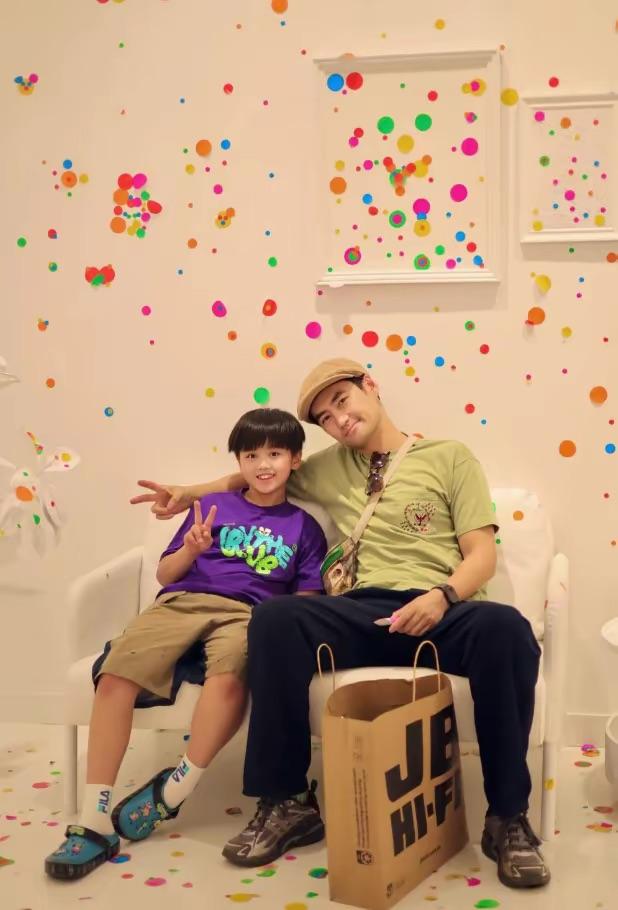張歆藝和袁弘的兒子,已經6歲了。他穿着粉色的上衣、長相很精緻,四坨特別的黏爸爸,幾乎在每一張爸爸的照片裏,他都出現了。