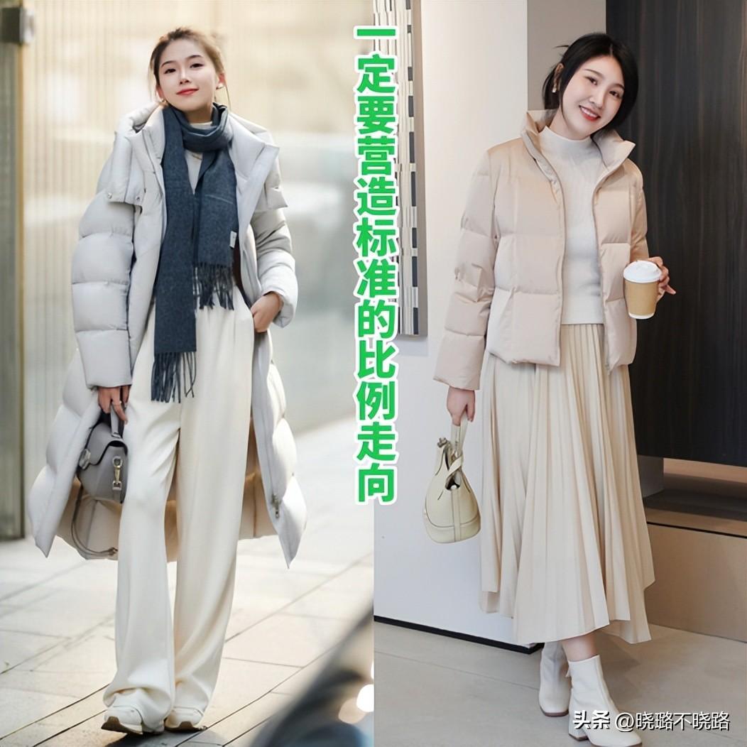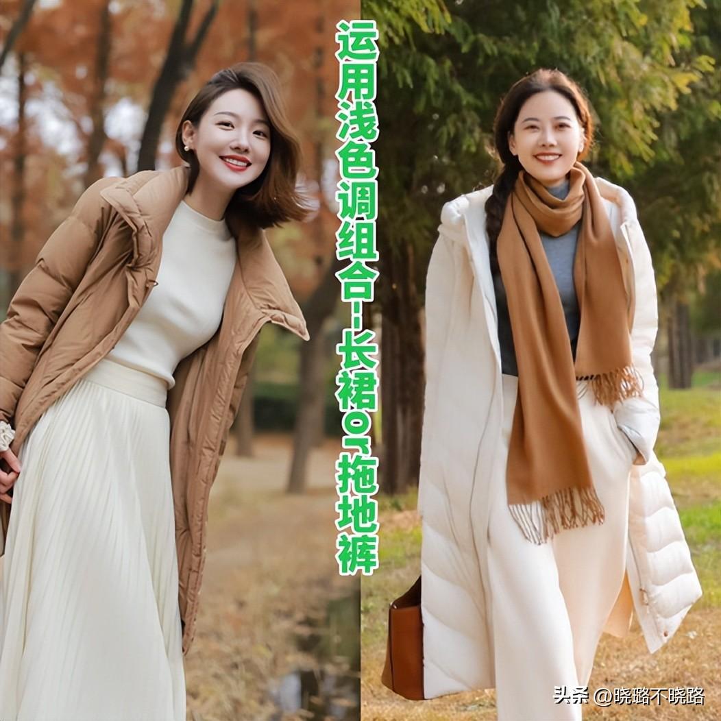羽絨服這一款單品其實非常的適合與優雅型的裙裝,又或者是寬鬆且拖地的優雅型褲裝來進行組合搭配,整體的氣質狀態偏向於優雅又溫柔的狀態。建議各位中年階段的女性可以多多的進行運用,真的是要比牛仔褲或者打底褲襯托高級有品位的女性魅力。