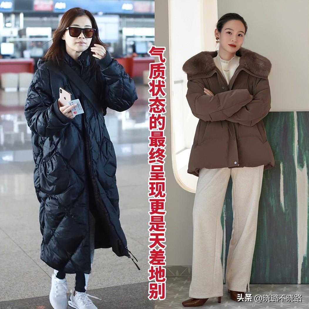 從這一組對比圖當中相信大家就可以很明顯的看出來,梅婷老師在冬季當中搭配羽絨服的時候,好像只會關注它的保暖性以及舒適度,所以與其他的女藝人的羽絨服搭配所選擇的單品完全是不一樣的。羽絨服就搭配打底褲以及運動鞋,這樣的組合真的是沒有任何的美感和氣質襯托呢。