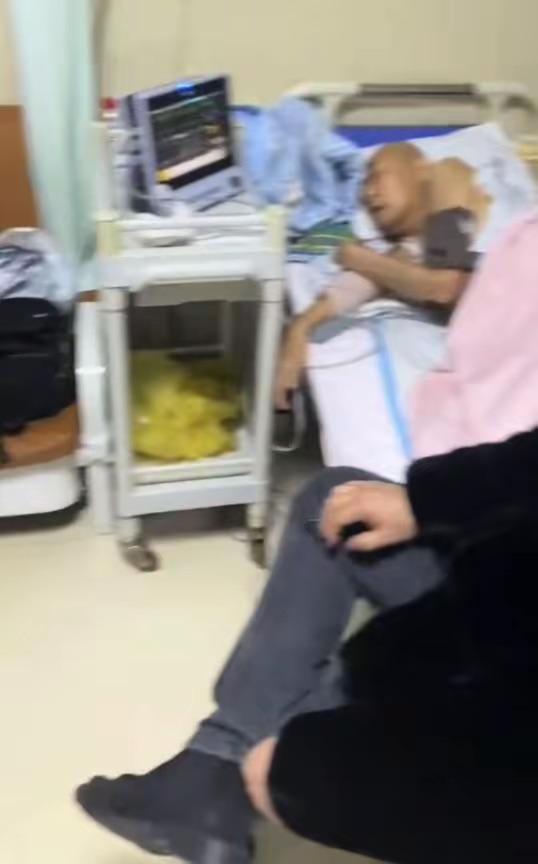 在吳連生的上半身,戴着這種監護儀器,他看起來已經瘦了很多了。與平日裏健壯的身材,可以形成鮮明對比,病態盡顯、滿是憔悴、痛苦無力。