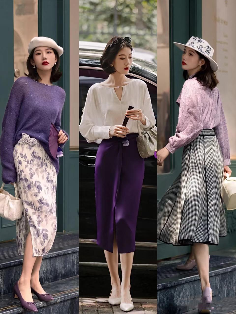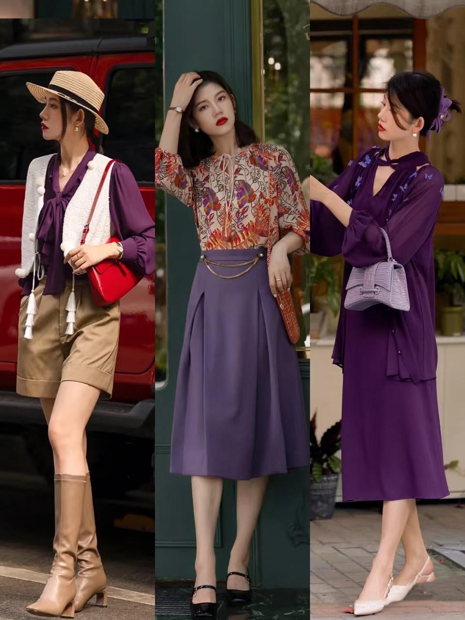 就像紫色套裝、或者紫色的襯衫、半身裙,在我們的穿搭中都格外醒目。讓簡約系穿搭更出彩,可以誇張但不廉價的配色、給足了我們高級感。