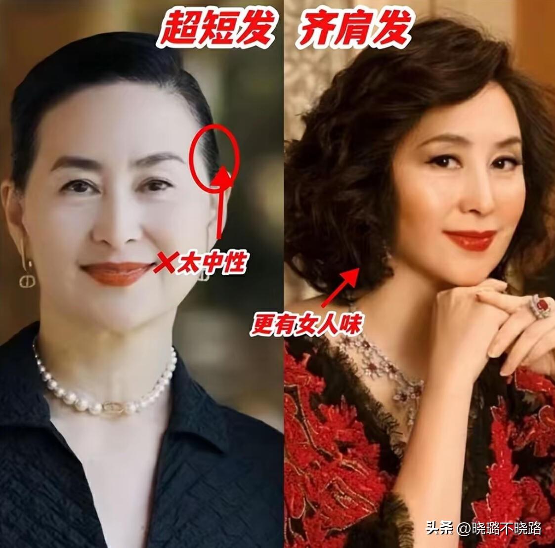 髮型的挑選可不能太馬虎,首先在風格上不要太中性,比如超短髮、貼頭髮扎發、大油頭都要避雷;齊肩長度的短捲髮,對面部的修飾性更高,並且還很有女人味兒。